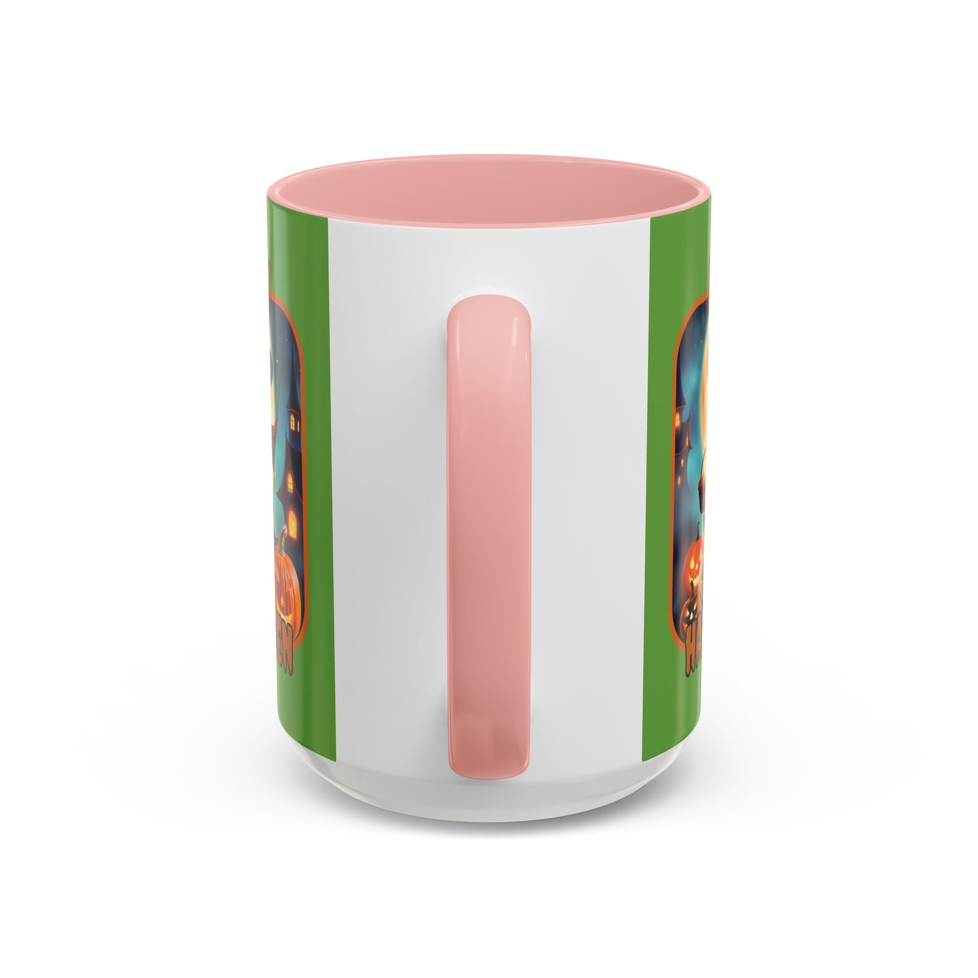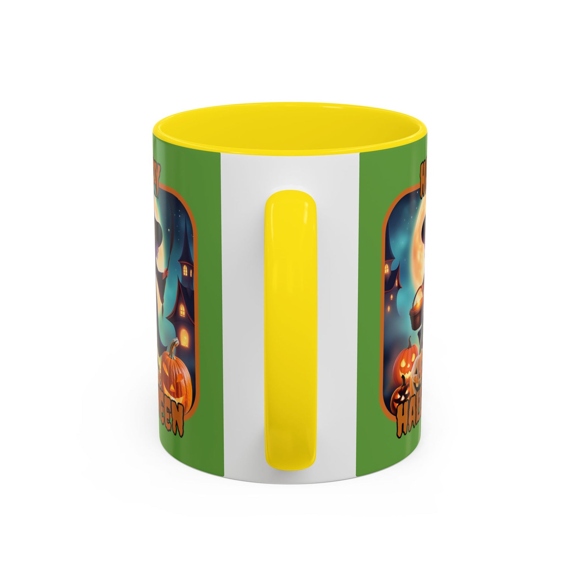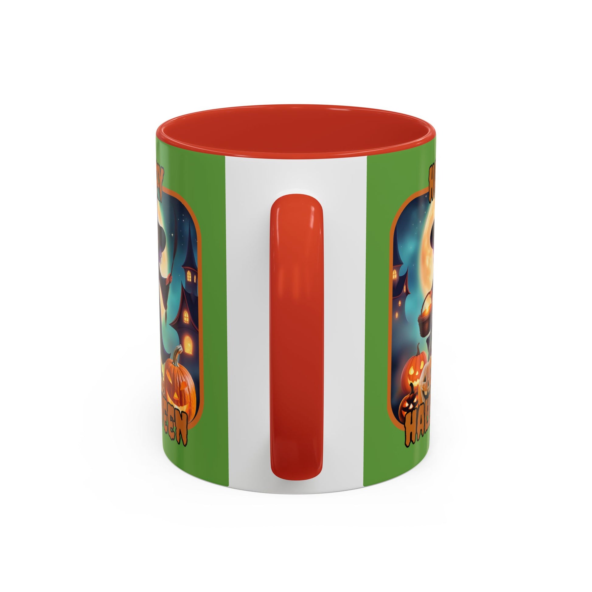 Happy Halloween Little Witch Orange font Green Accent Mug by CreepyCrafts.boo