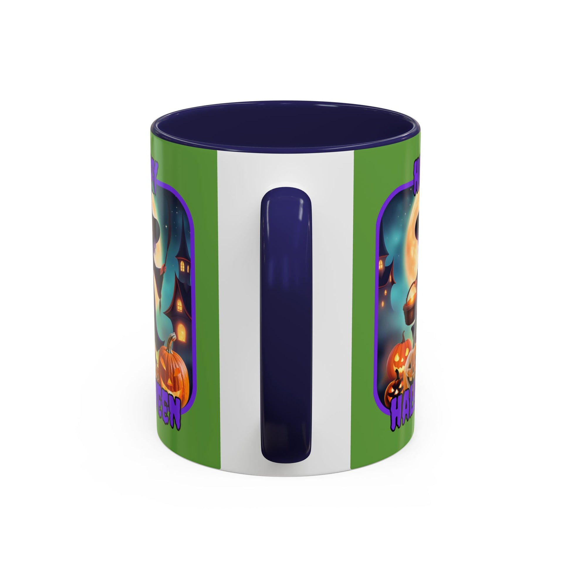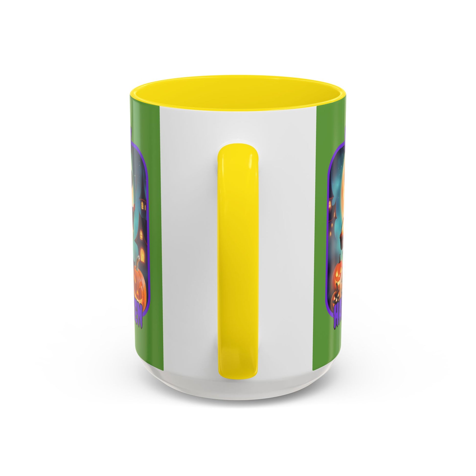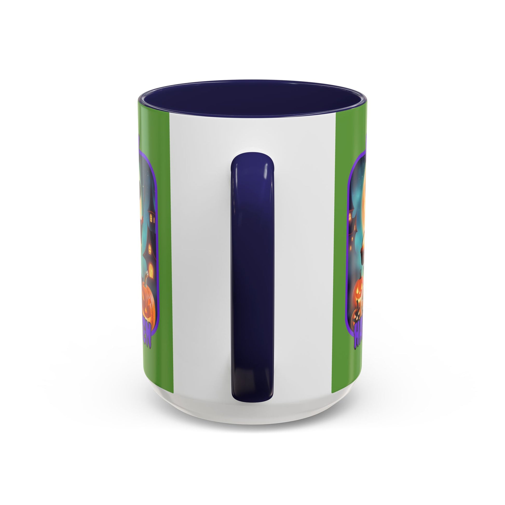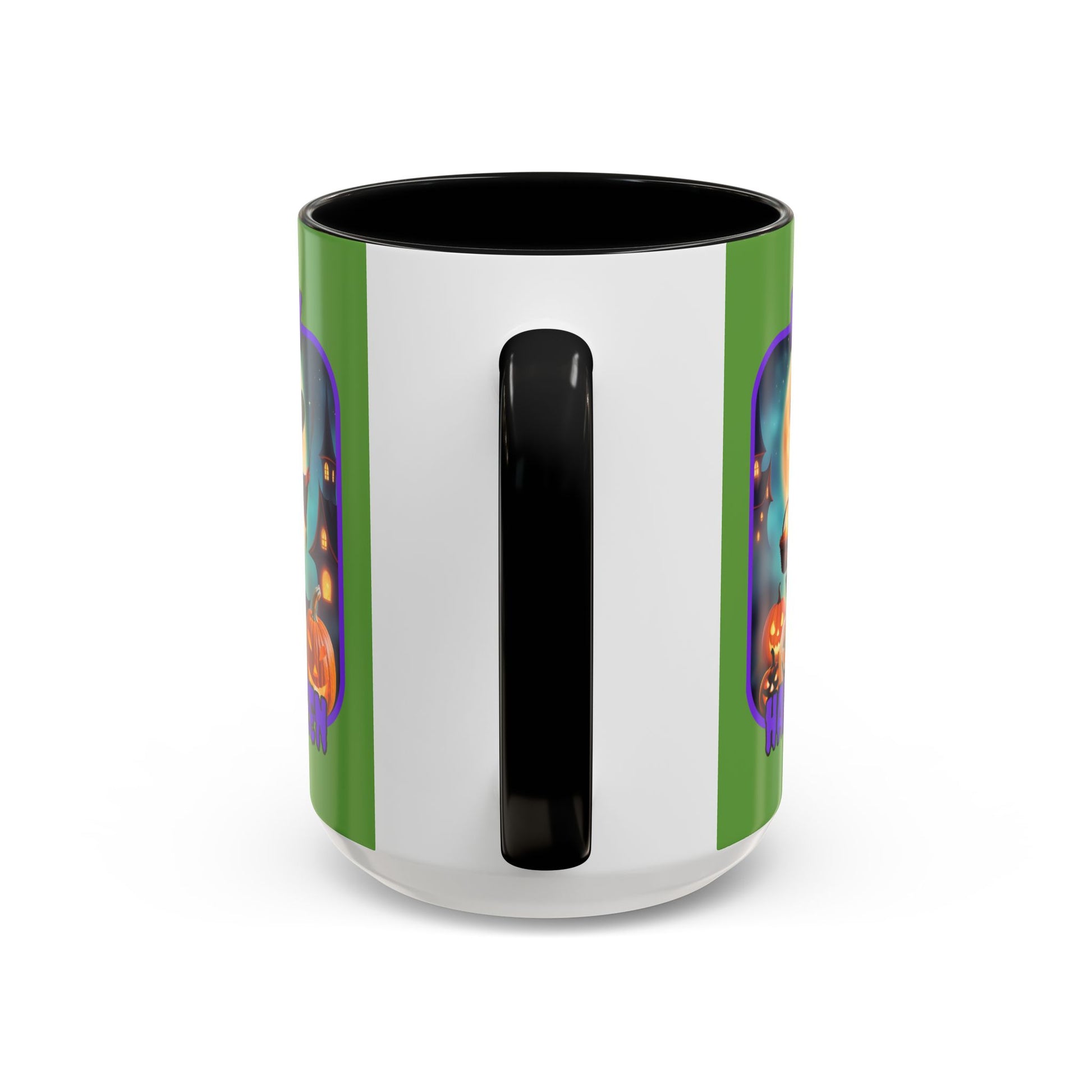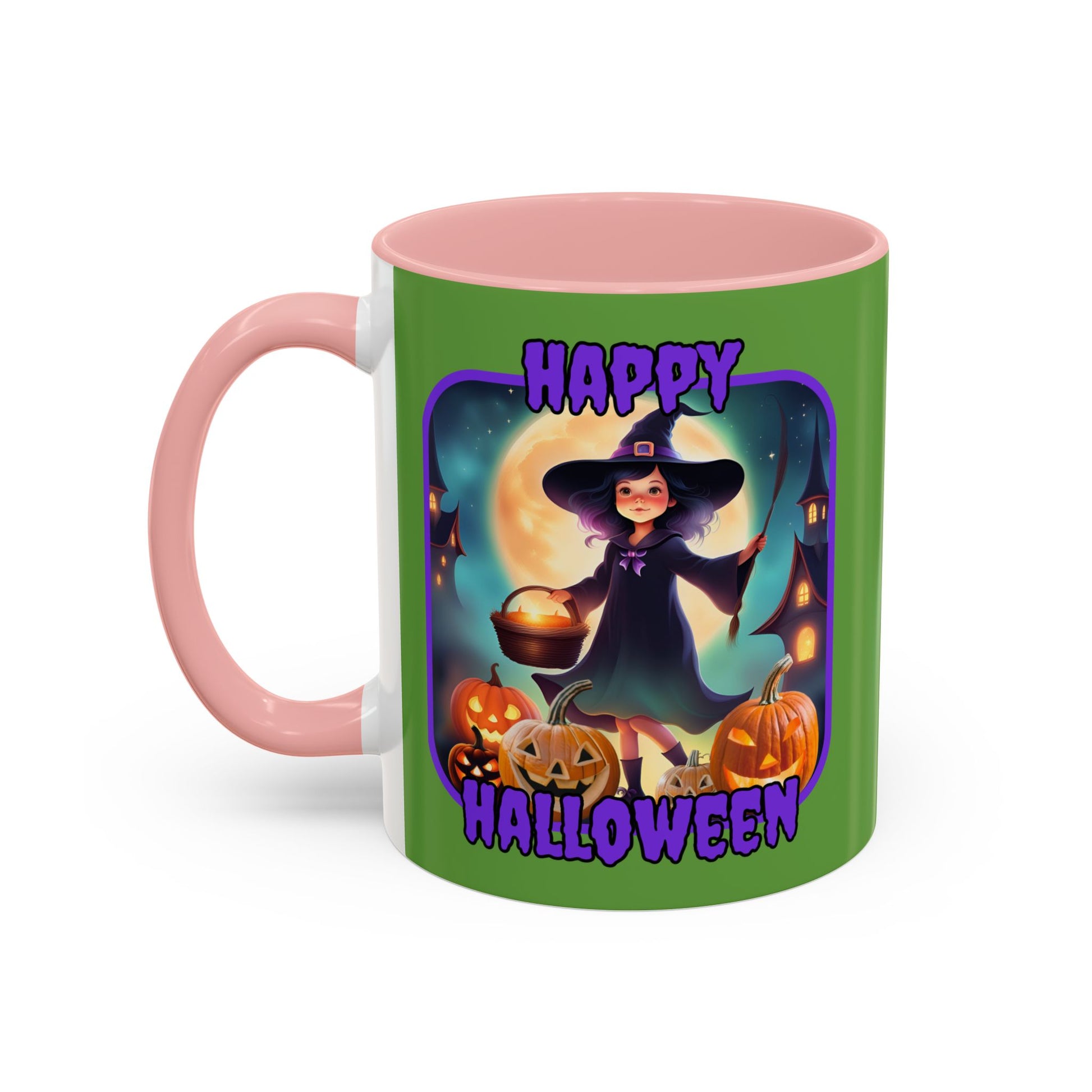 Happy Halloween Little Witch Purple font Green Accent Mug by CreepyCrafts.boo