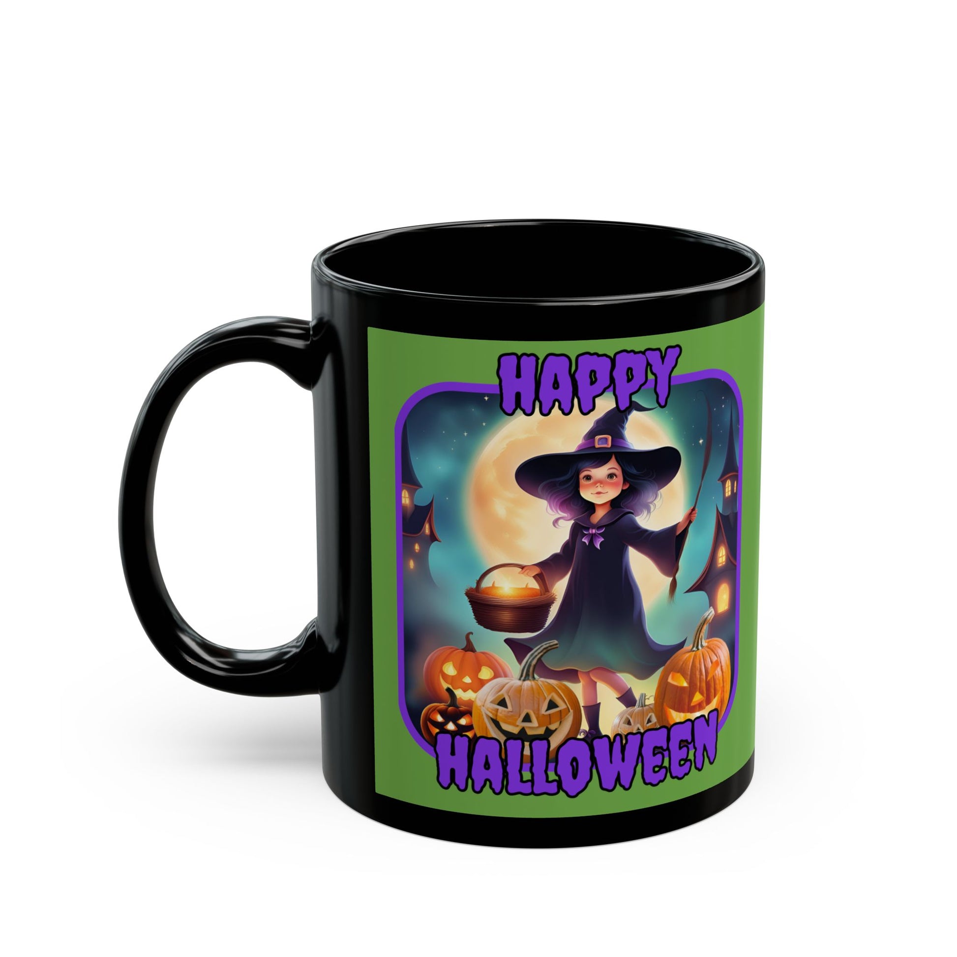 Get spooktacular style with our adorable witch and jack-o'-lantern black mug! 🎃 Perfect for Halloween, Samhain, or any day, this mug features a cute witch amongst smiling jack-o'-lanterns. Shop now and embrace the magic!