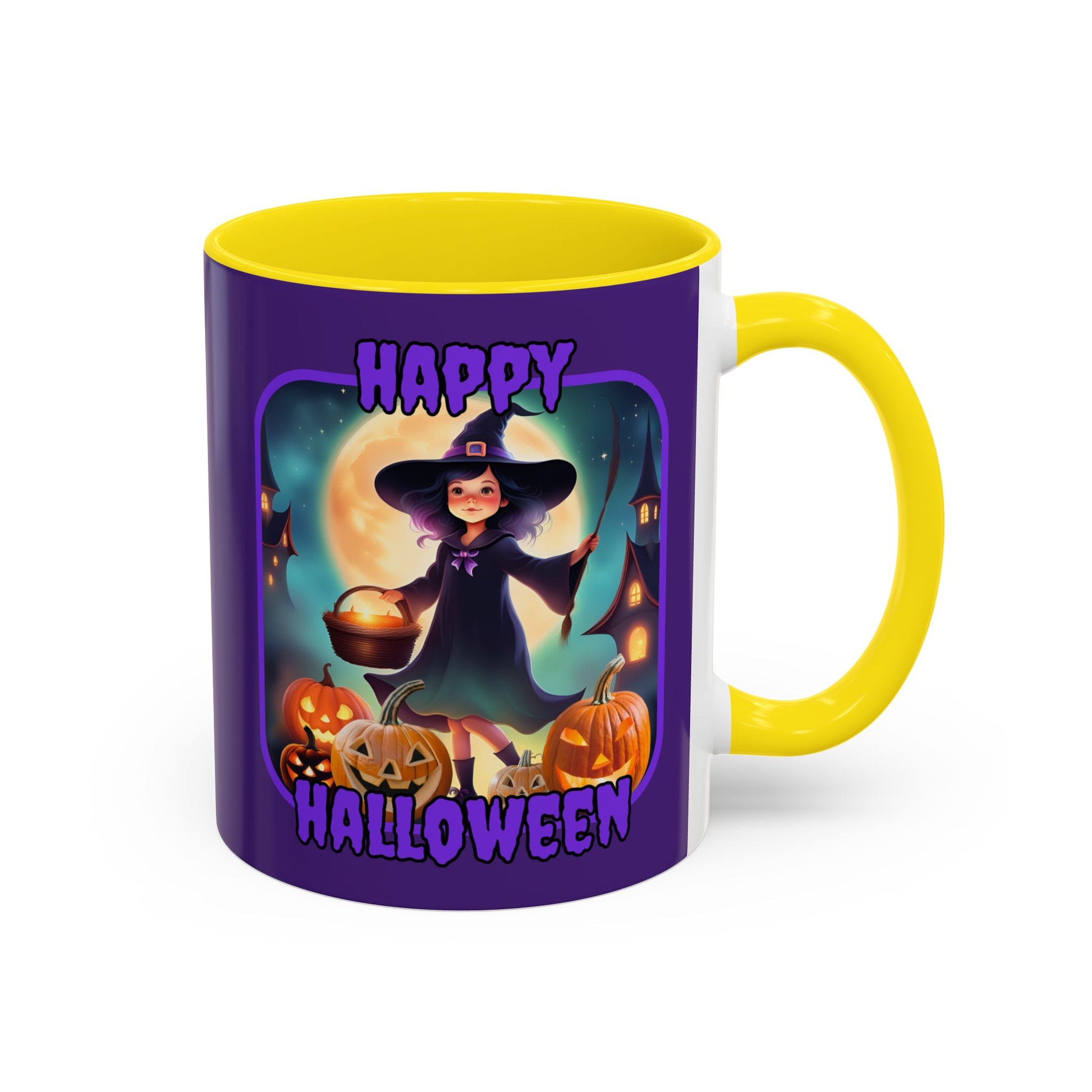 Happy Halloween Little Witch Purple font Purple Accent Mug by CreepyCrafts.boo