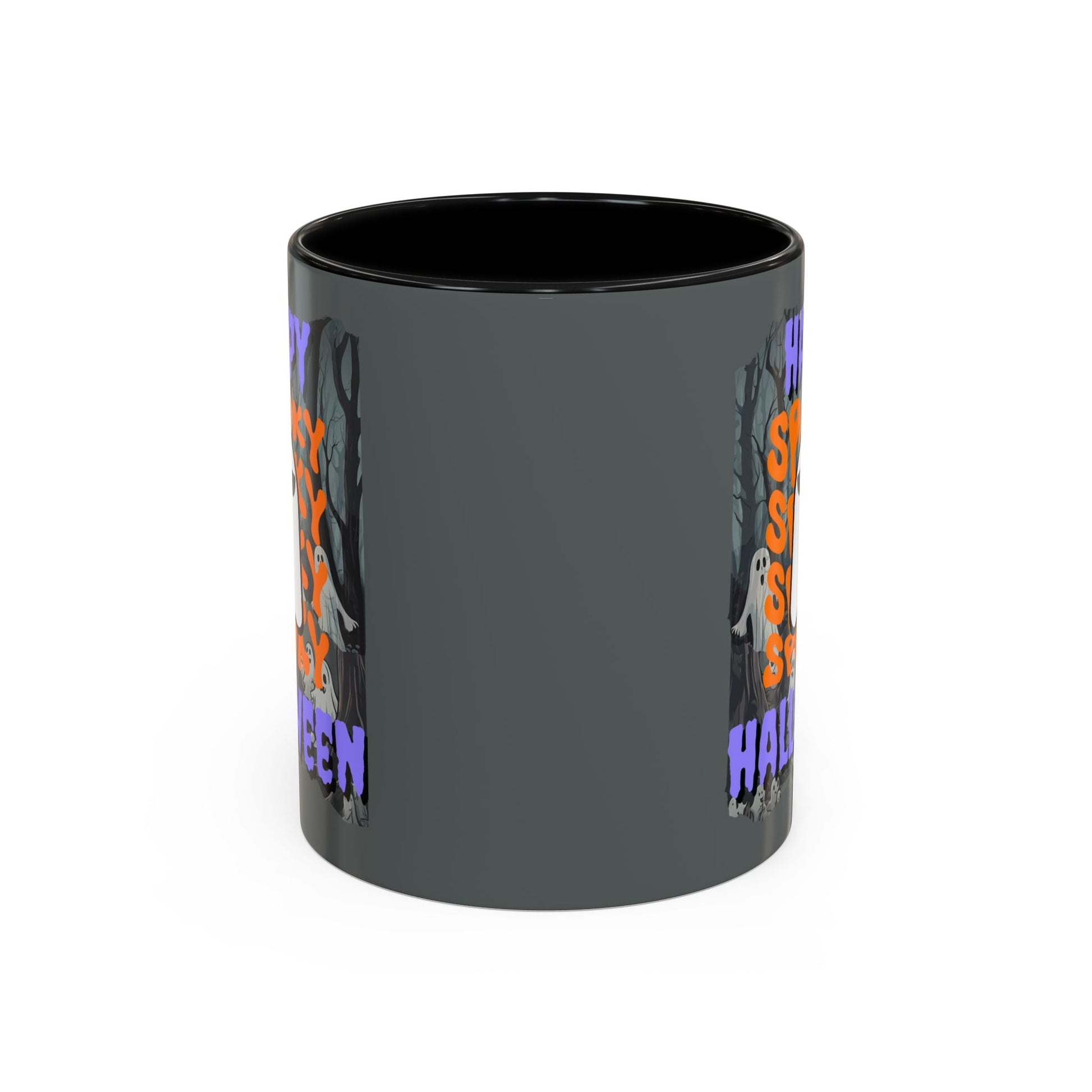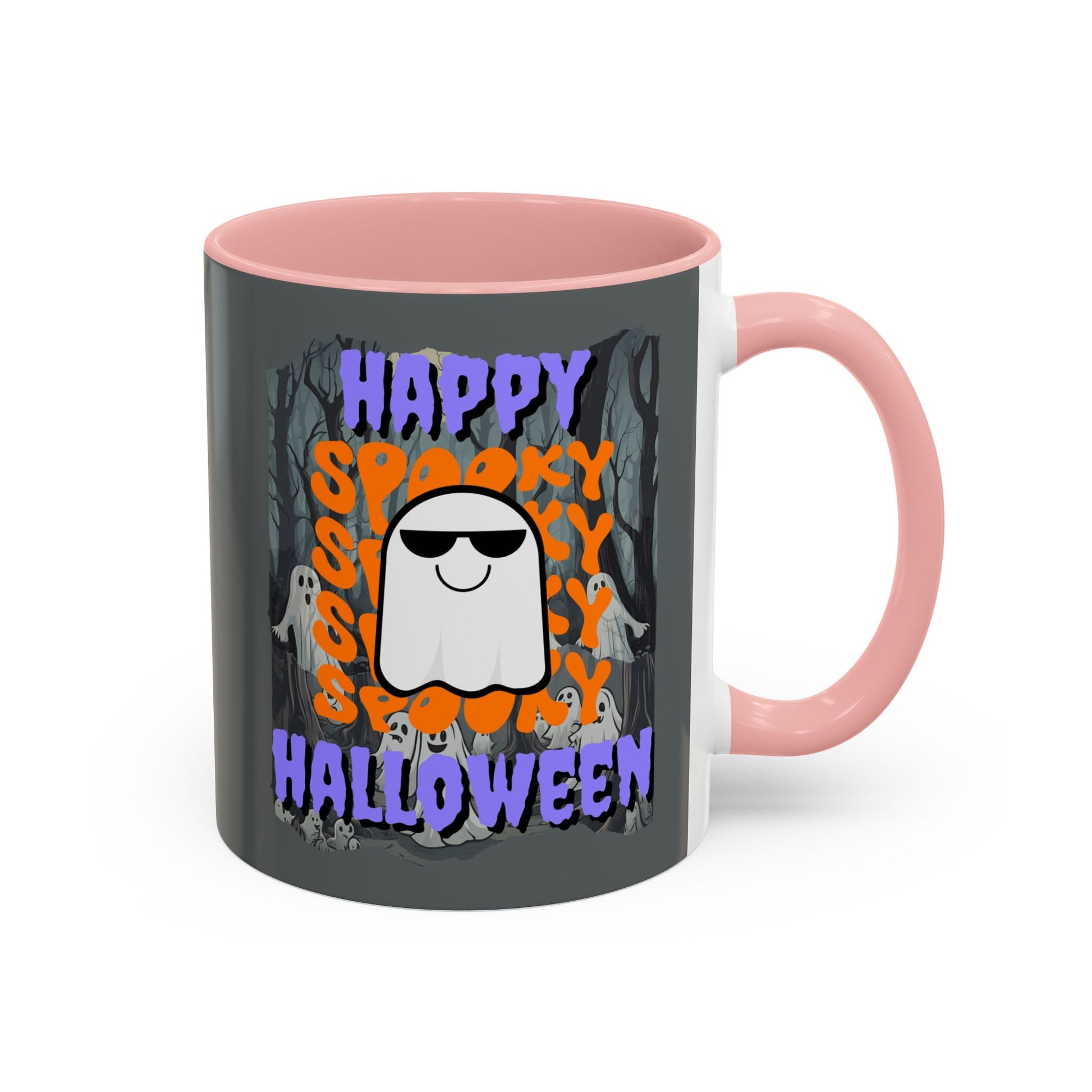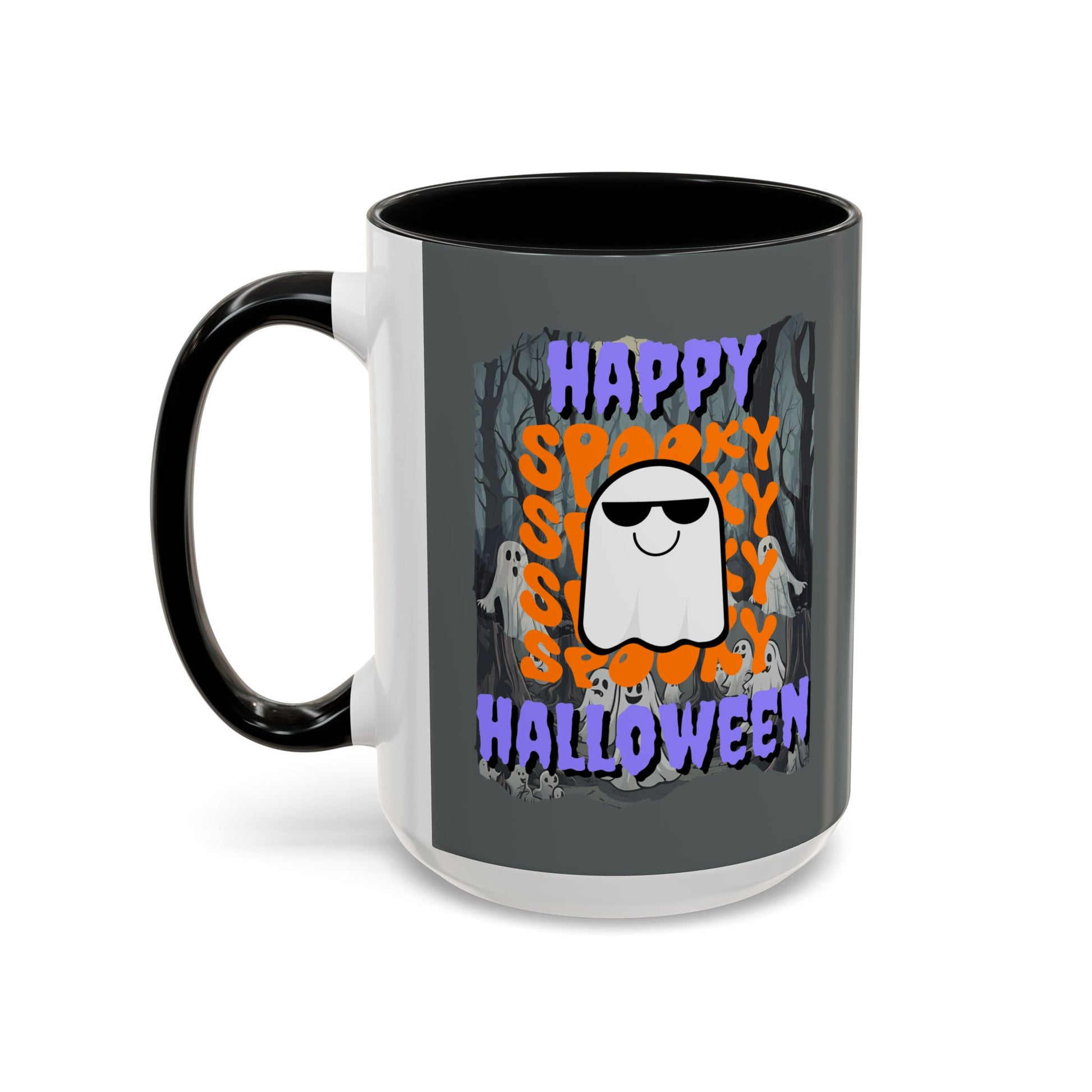 Or, if you prefer: Spooky Happy Halloween Ghost Mixed font Grey Accent Mug by CreepyCrafts.boo