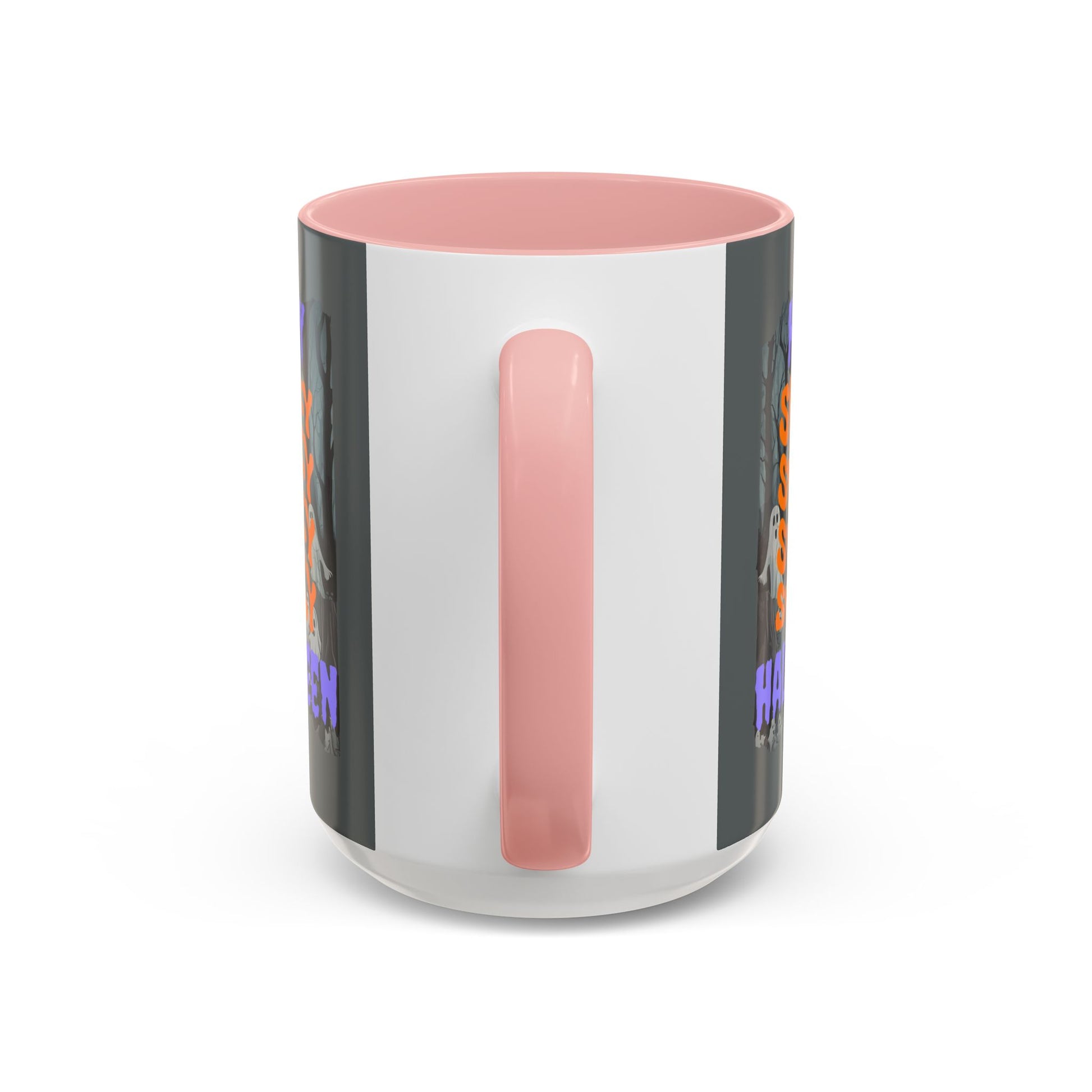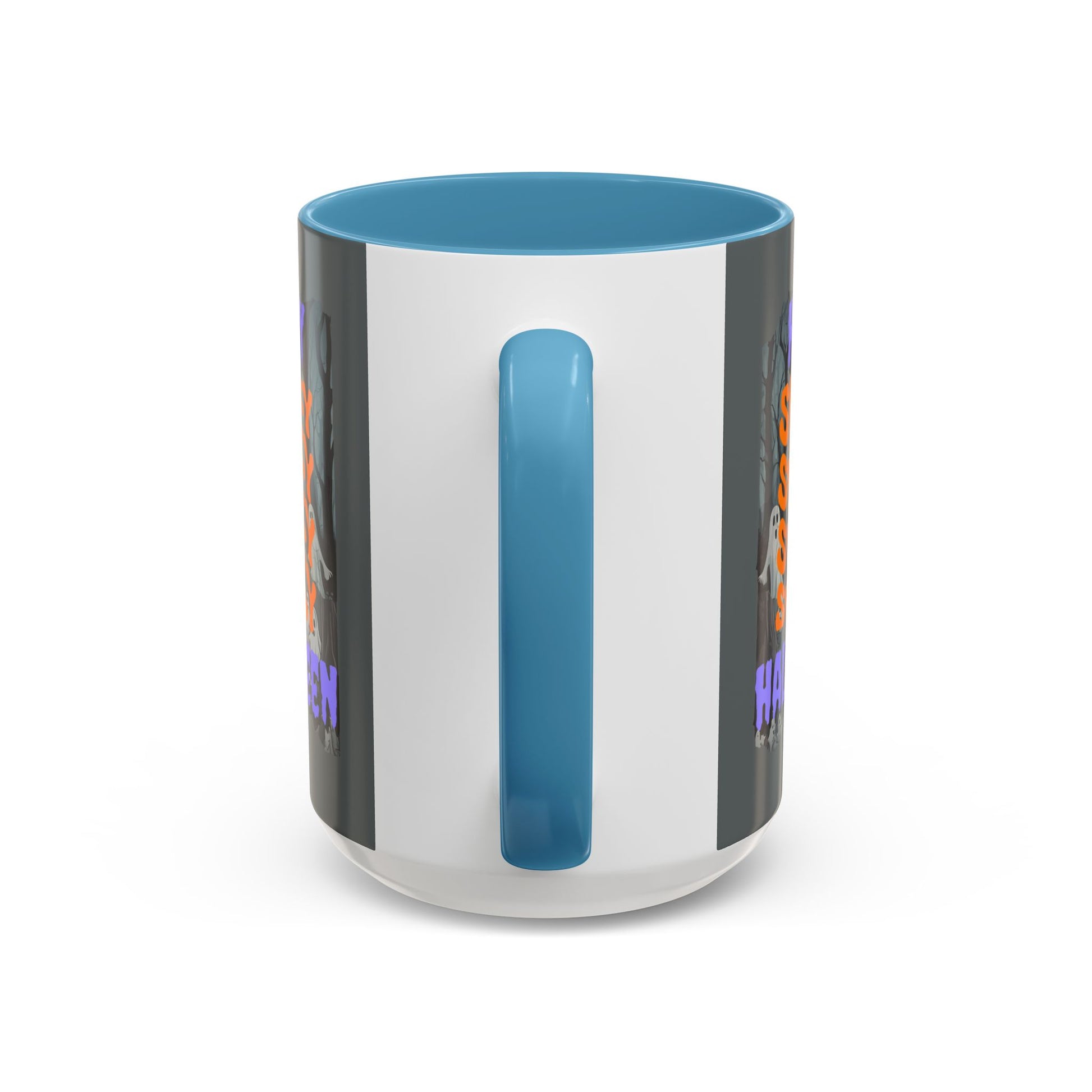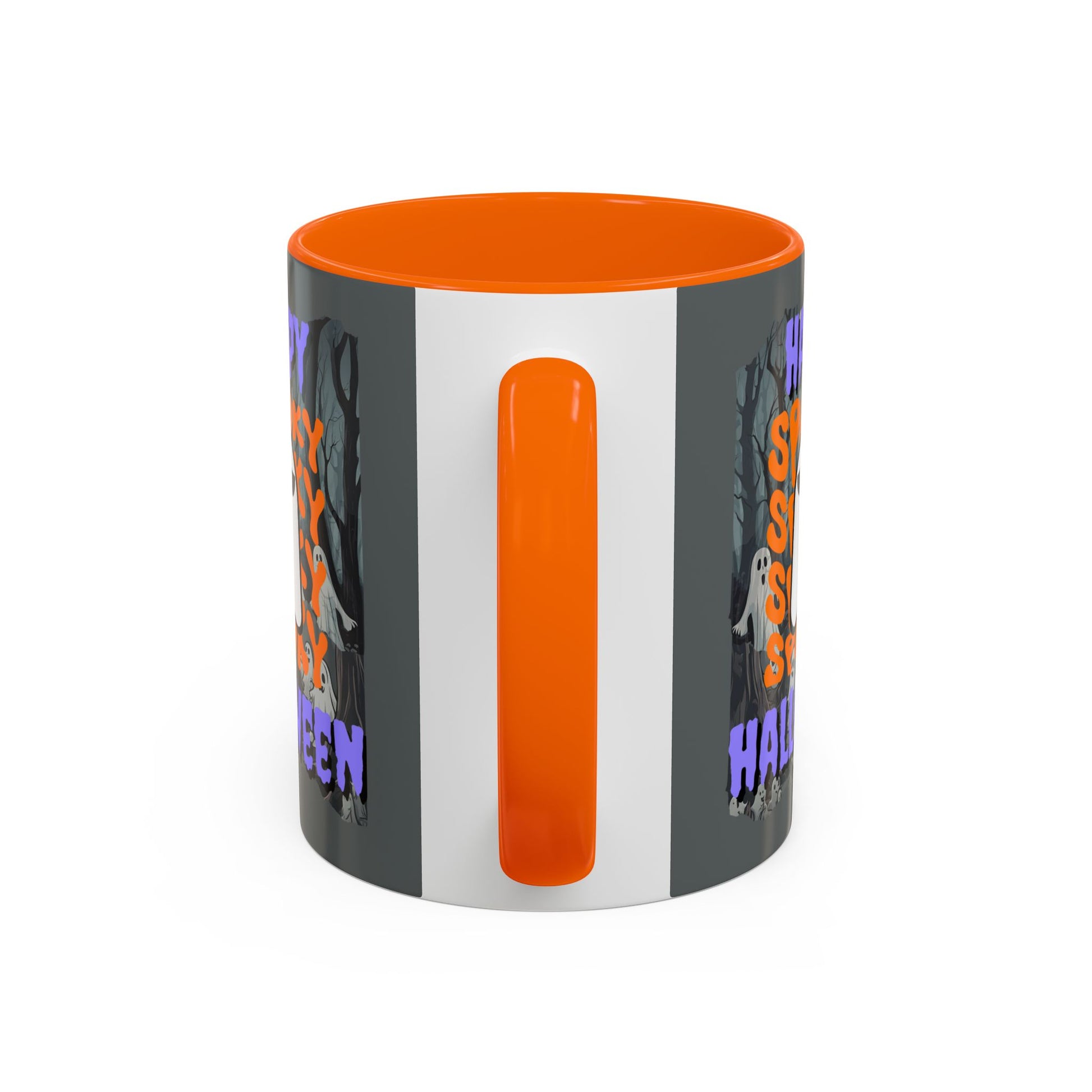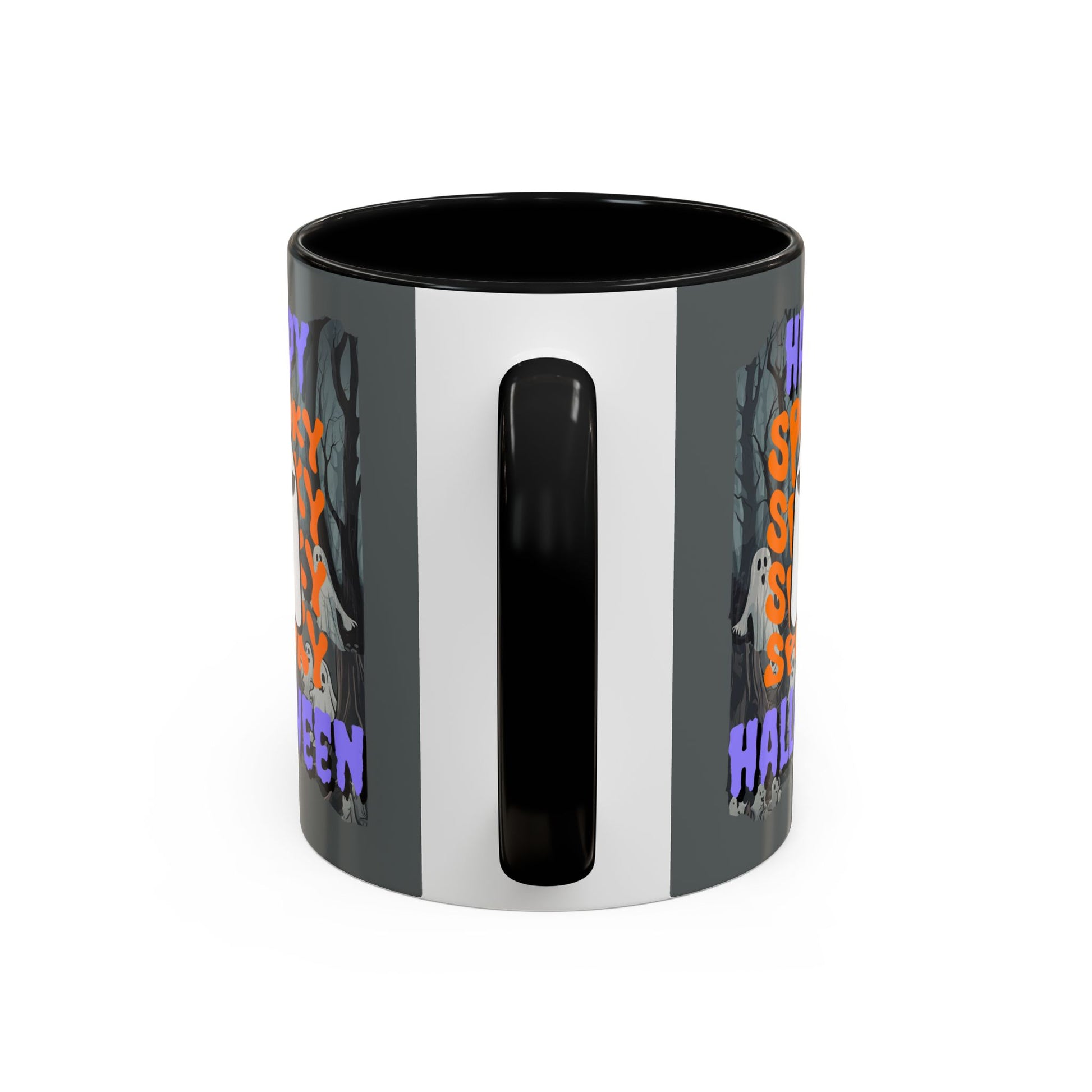 Or, if you prefer: Spooky Happy Halloween Ghost Mixed font Grey Accent Mug by CreepyCrafts.boo