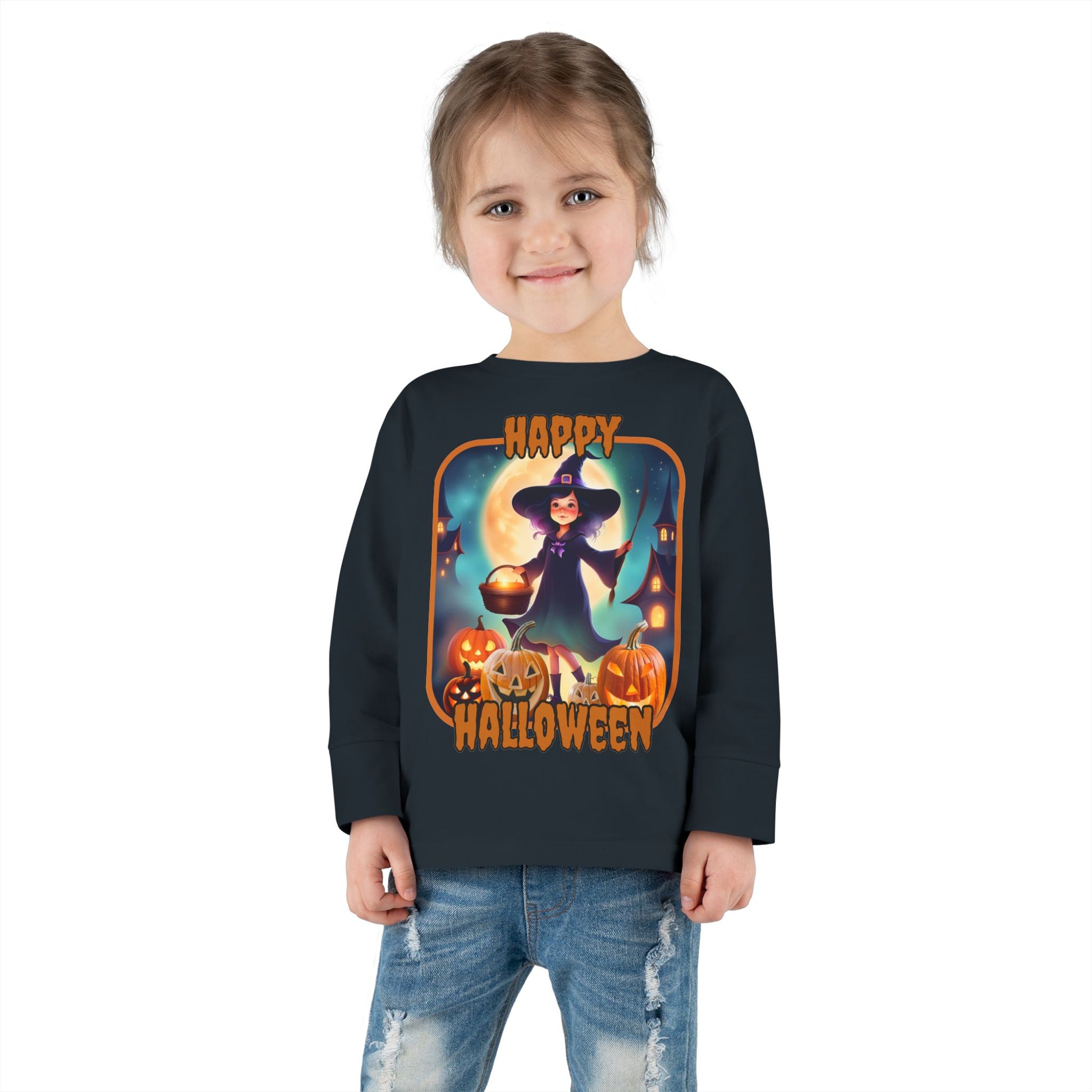 Get spooktacular style with our adorable witch and jack-o'-lantern Toddler Long Sleeve T-Shirt! 🎃 Perfect for Halloween, Samhain, or any day, this shirt features a cute witch amongst smiling jack-o'-lanterns. Shop now and embrace the magic!