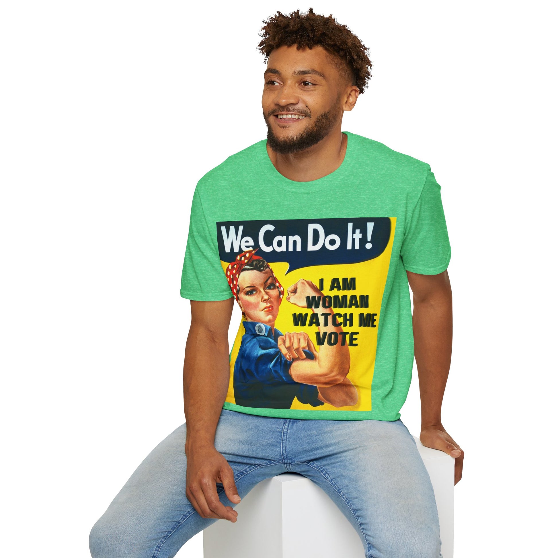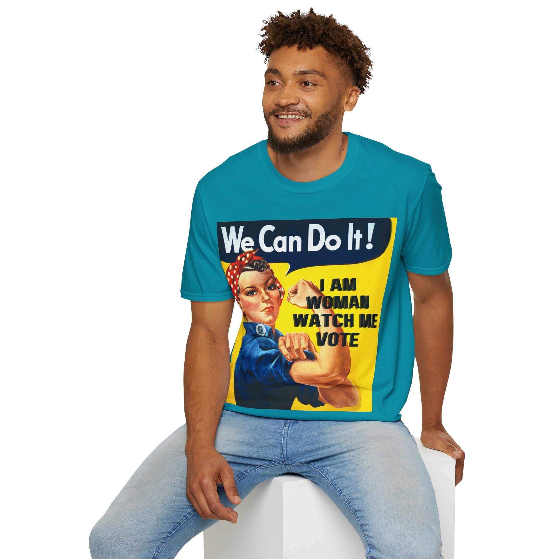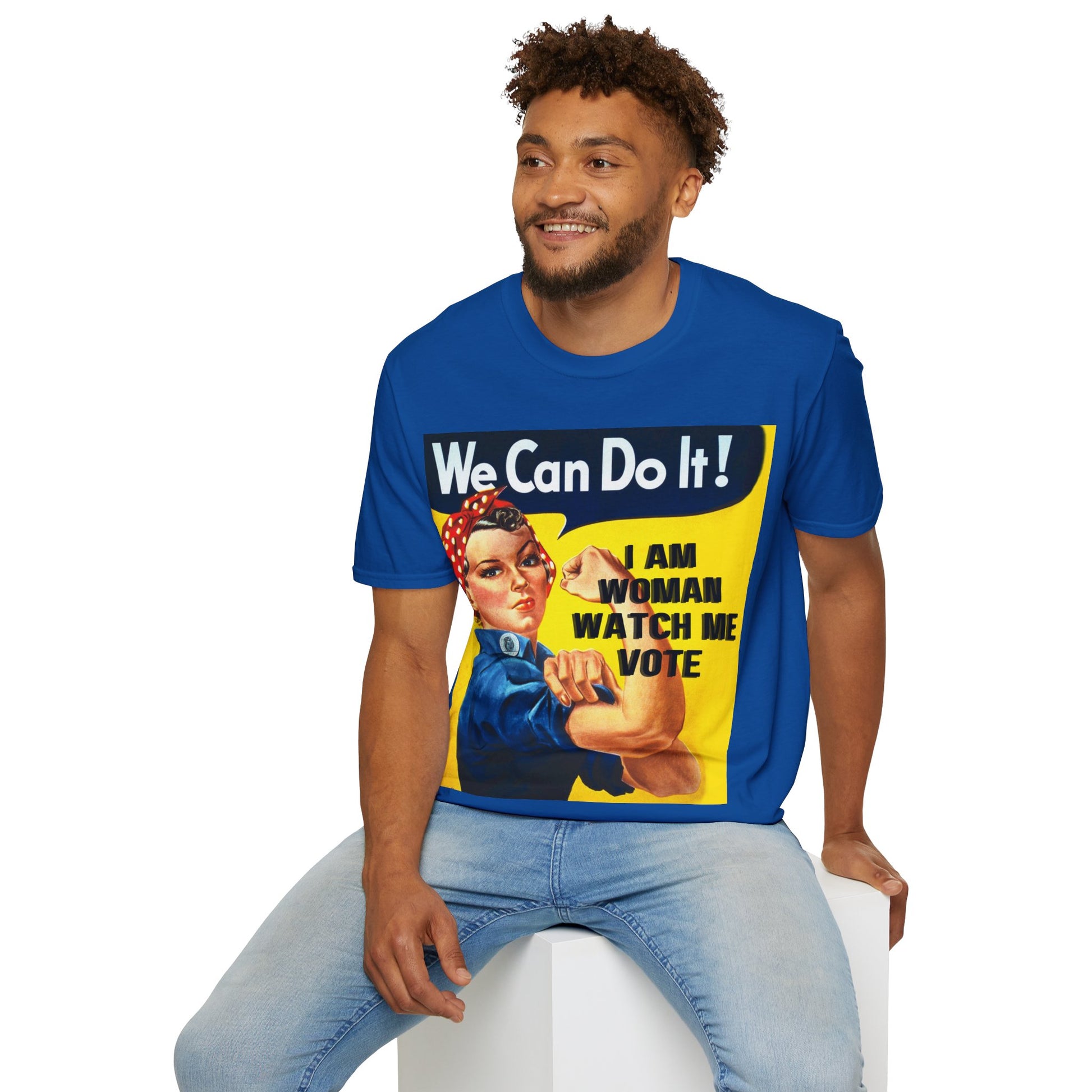 Show off your commitment to civic engagement with the I Am Woman Watch Me Vote Rosie Dark colors Unisex T-Shirt by cypherpunkgear.com