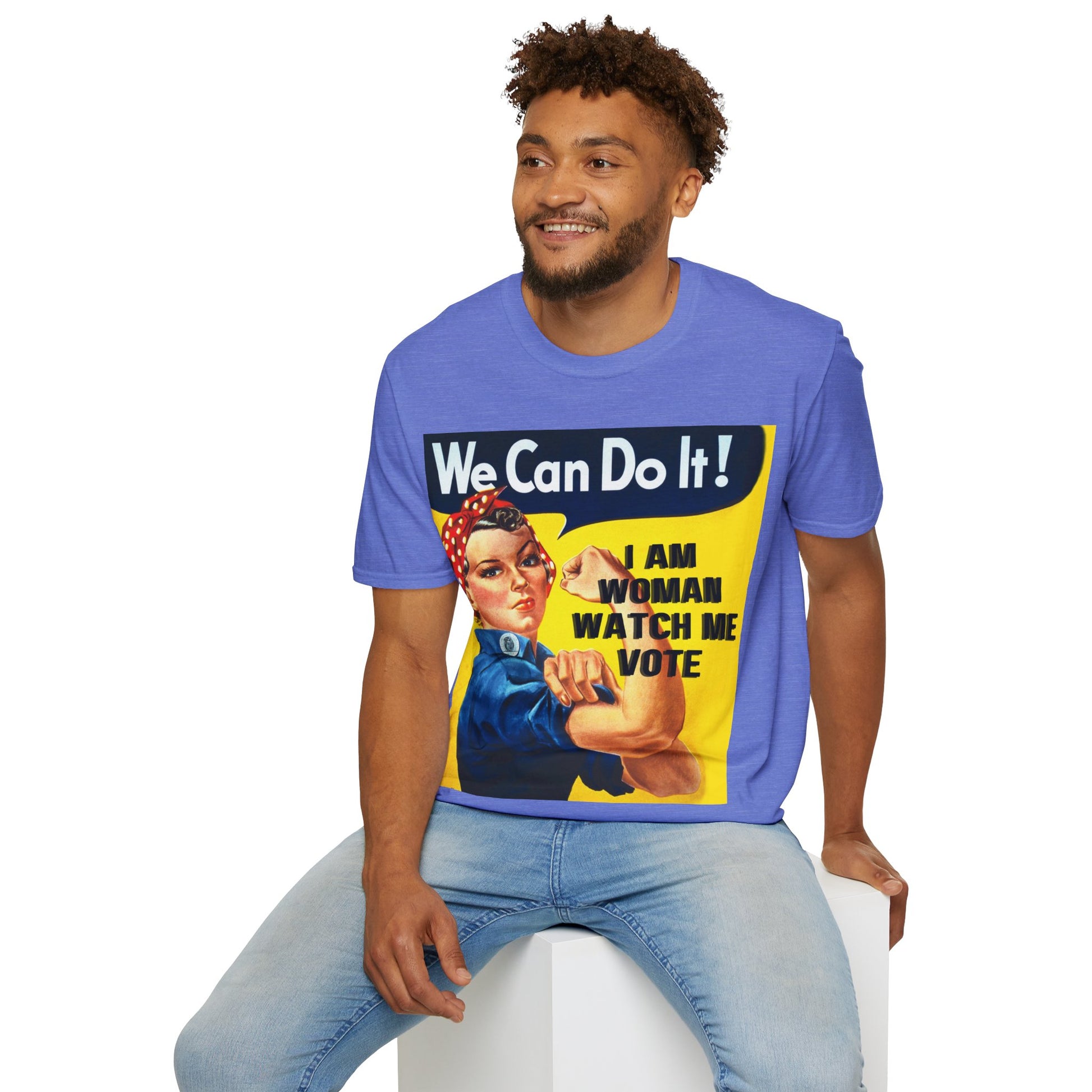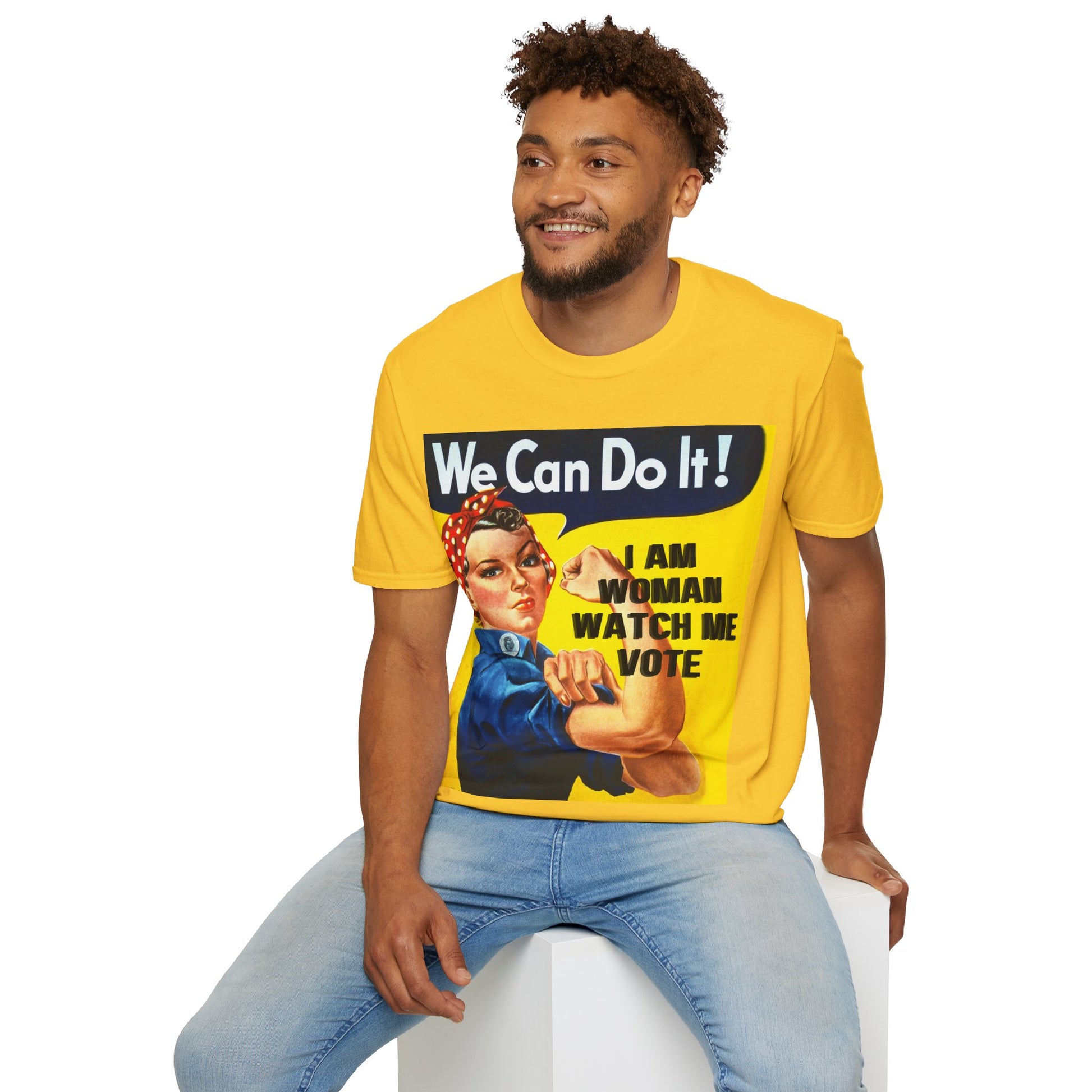 Show off your commitment to civic engagement with the I Am Woman Watch Me Vote Rosie LTcolors Unisex T-Shirt by cypherpunkgear.com