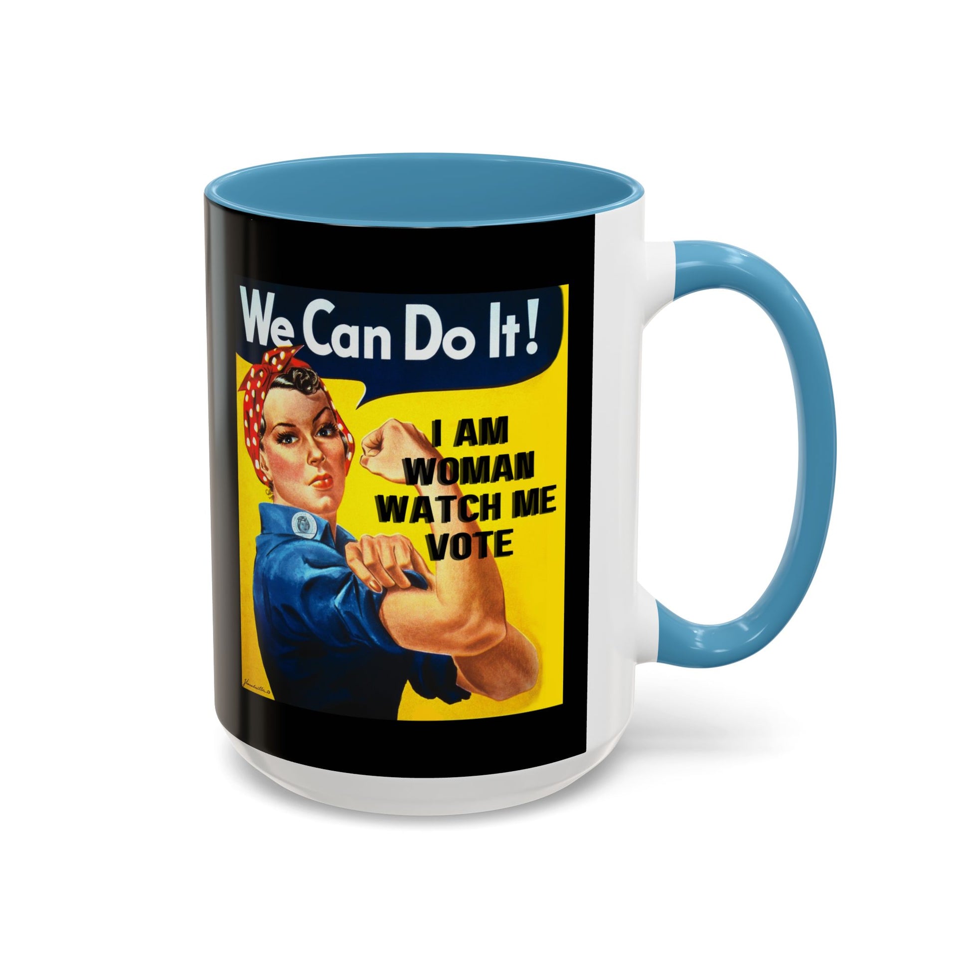 I Am Woman Watch Me Vote Rosie Black Accent Mug by cypherpunkgear.com