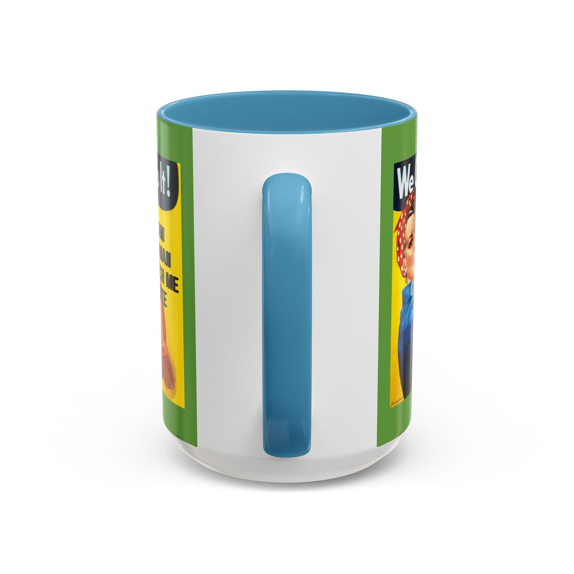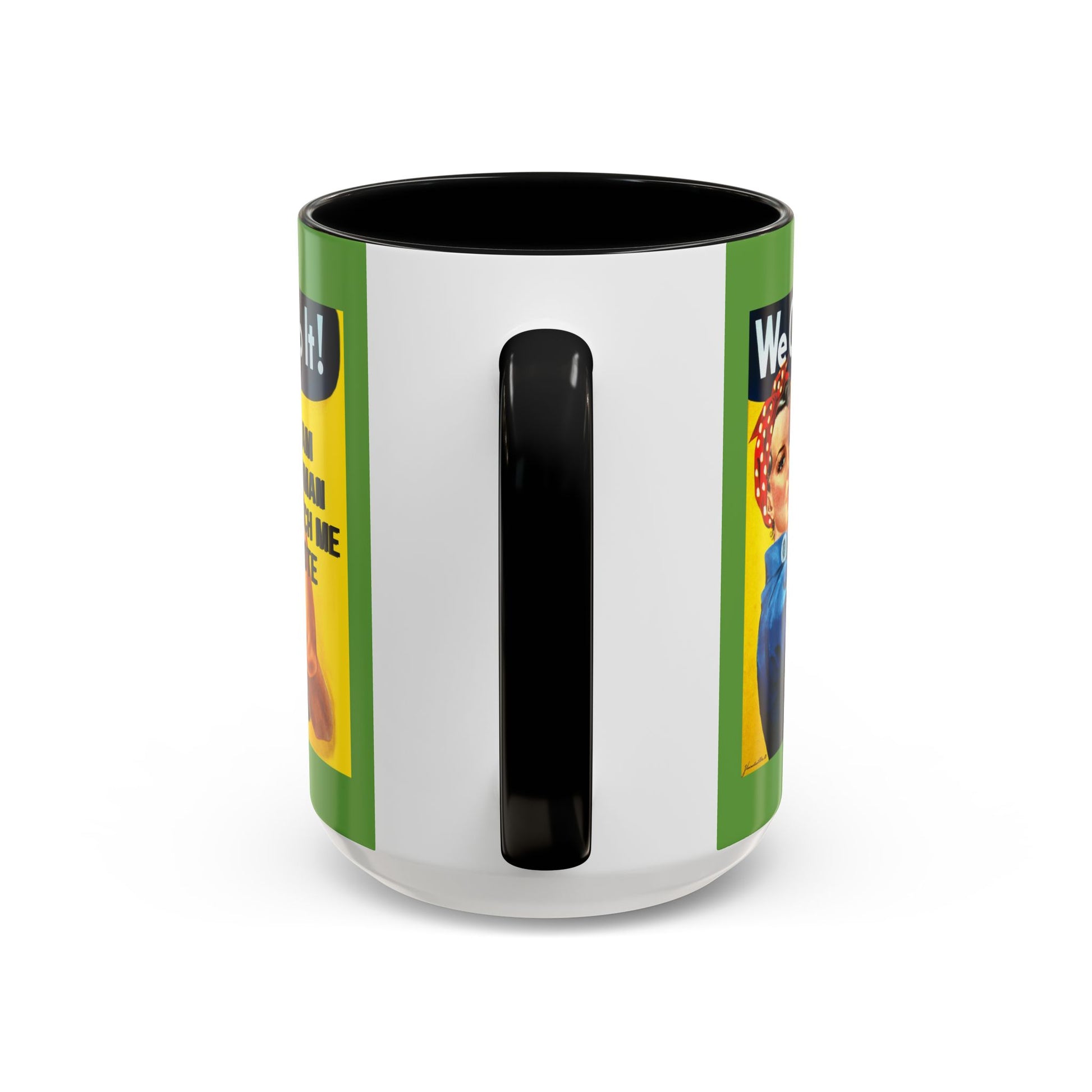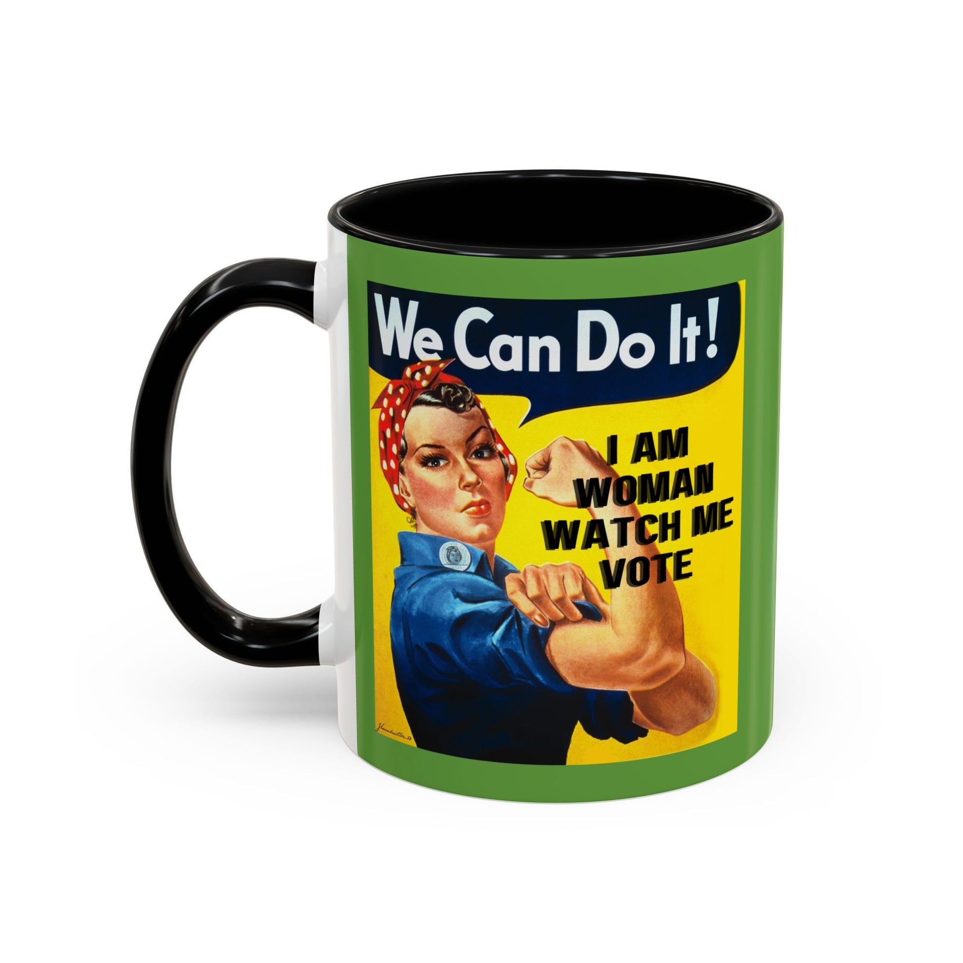 Show off your commitment to civic engagement with the I Am Woman Watch Me Vote Rosie Green Accent Mug by cypherpunkgear.com