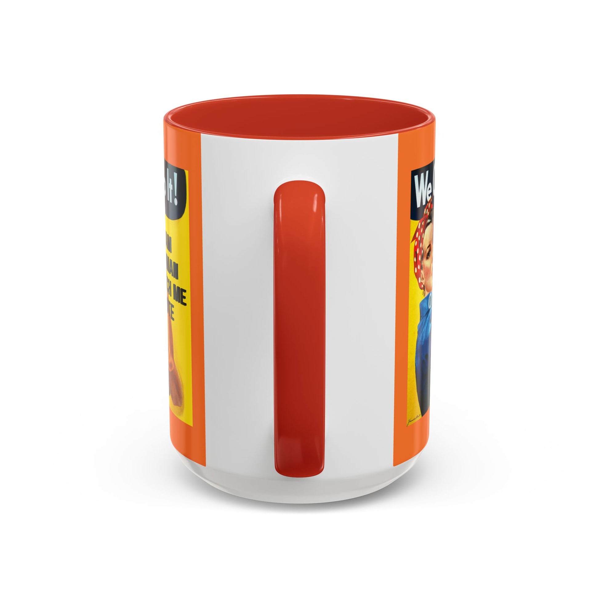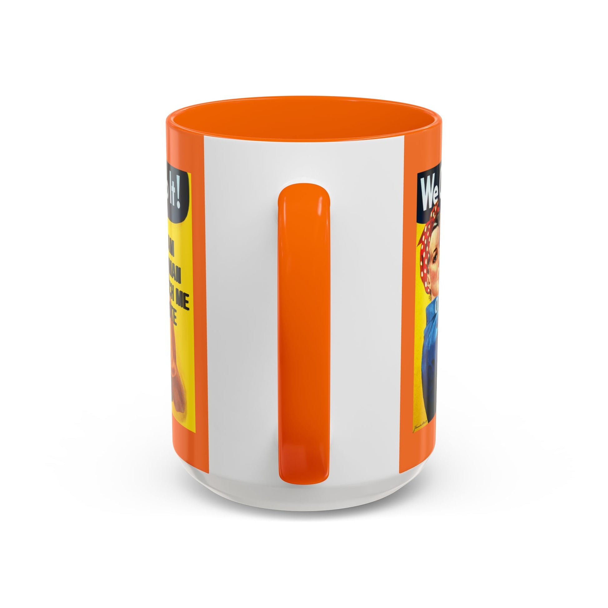 Show off your commitment to civic engagement with the I Am Woman Watch Me Vote Rosie Orange Accent Mug by cypherpunkgear.com