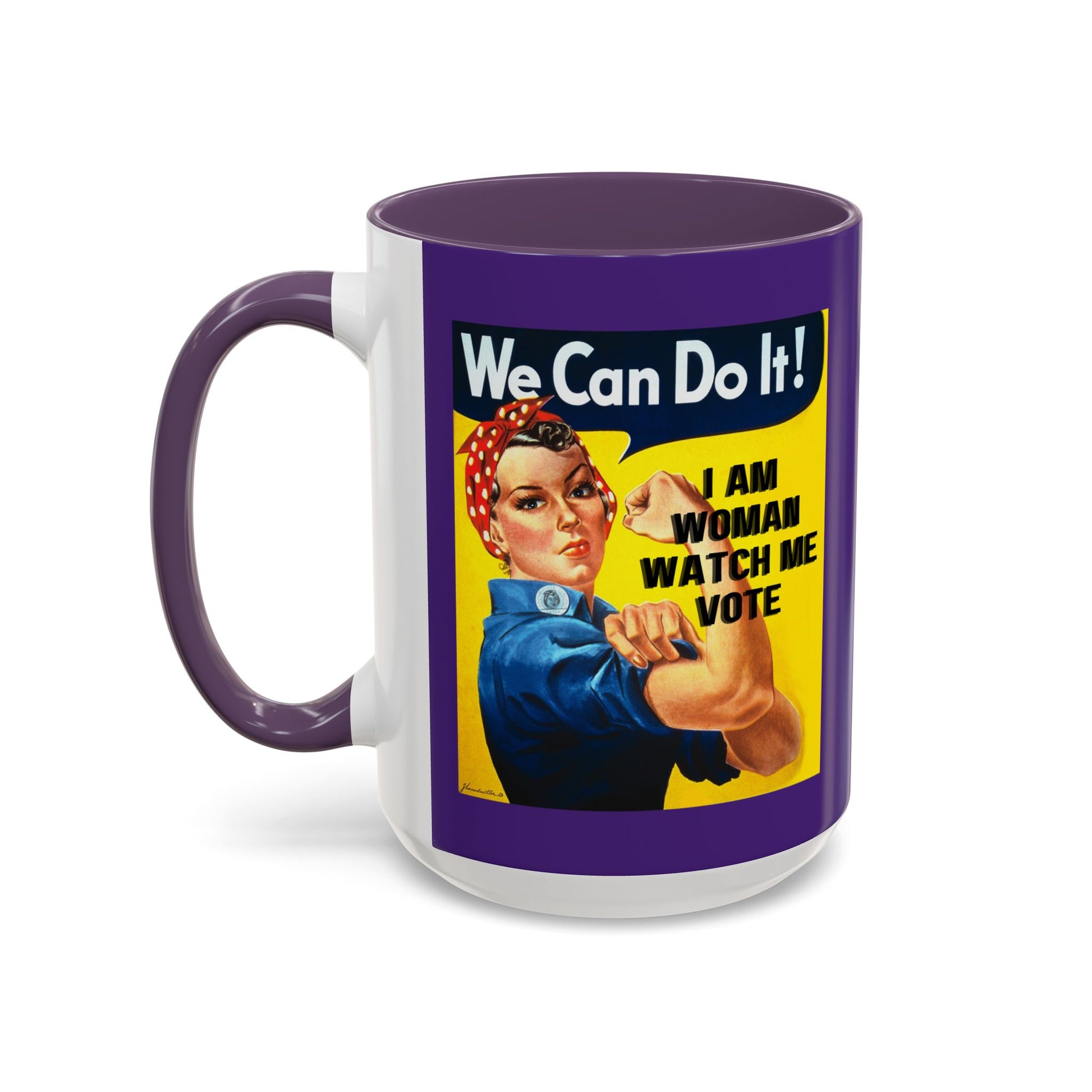 Show off your commitment to civic engagement with the I Am Woman Watch Me Vote Rosie Dark Purple Accent Mug by cypherpunkgear.com