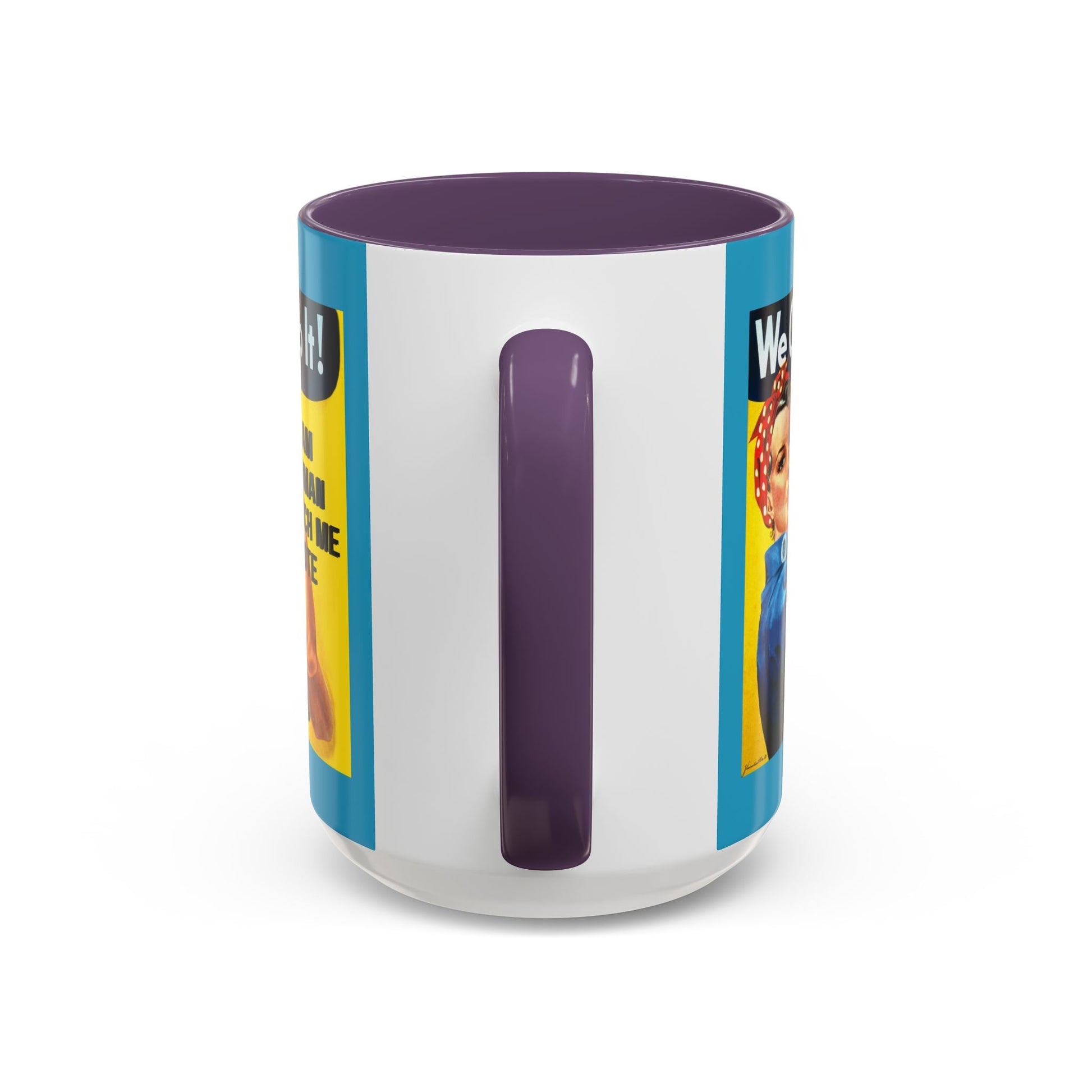 Show off your commitment to civic engagement with the I Am Woman Watch Me Vote Rosie Turquoise Accent Mug by cypherpunkgear.com