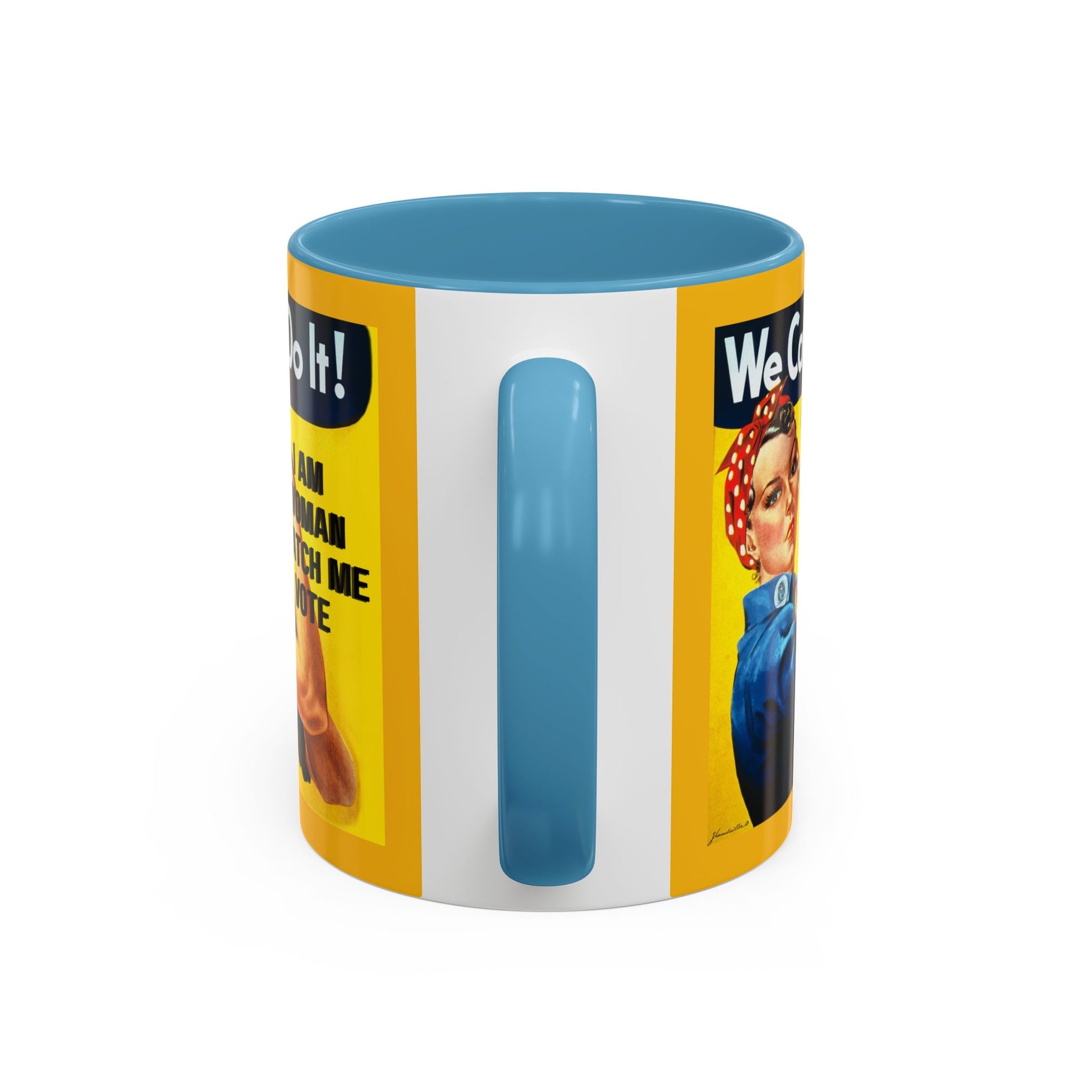 I Am Woman Watch Me Vote Rosie Yellow Accent Mug by cypherpunkgear.com
