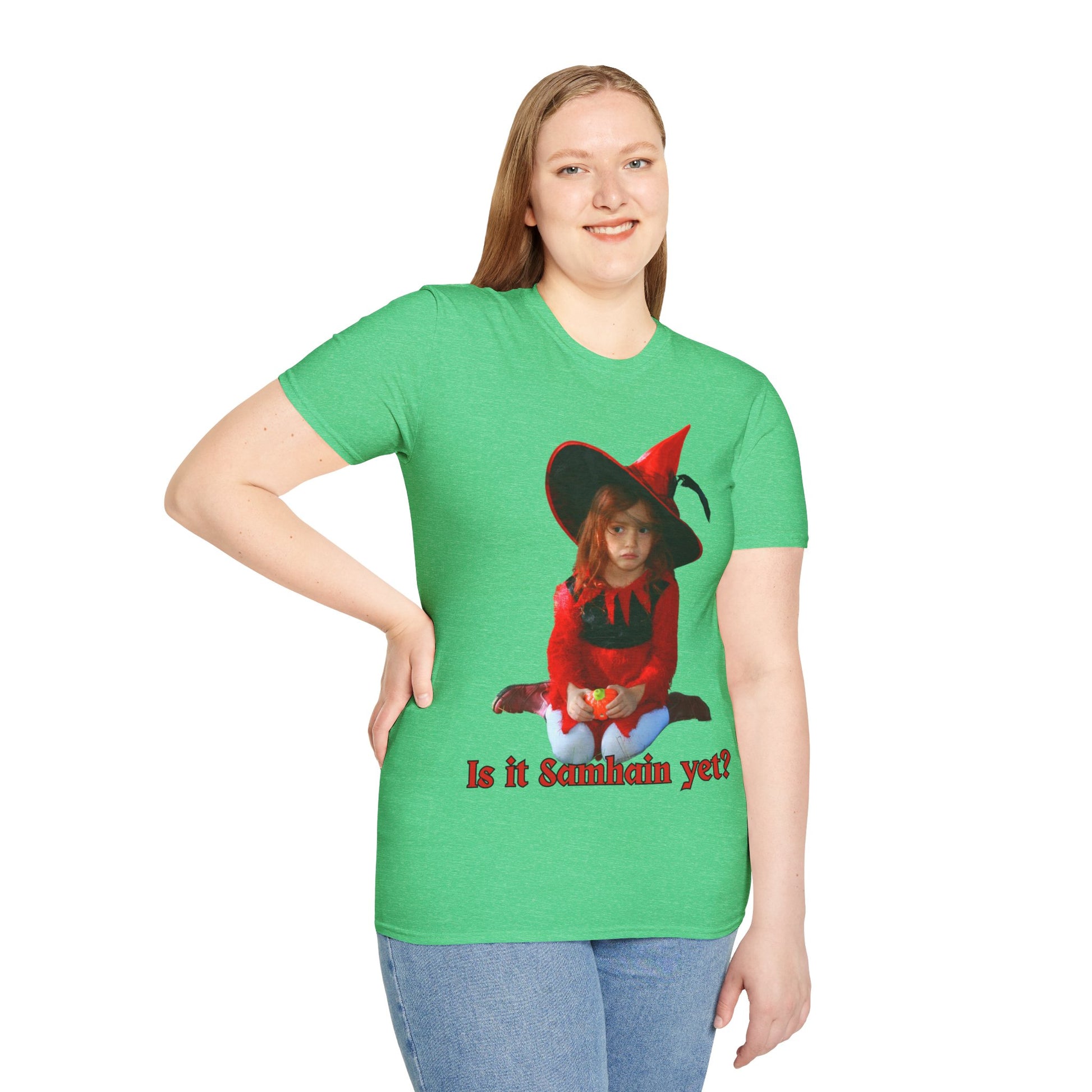 Is it almost Samhain? How about now? Is it Samhain yet? DKcolors Unisex T-Shirt by CreepyCrafts.boo