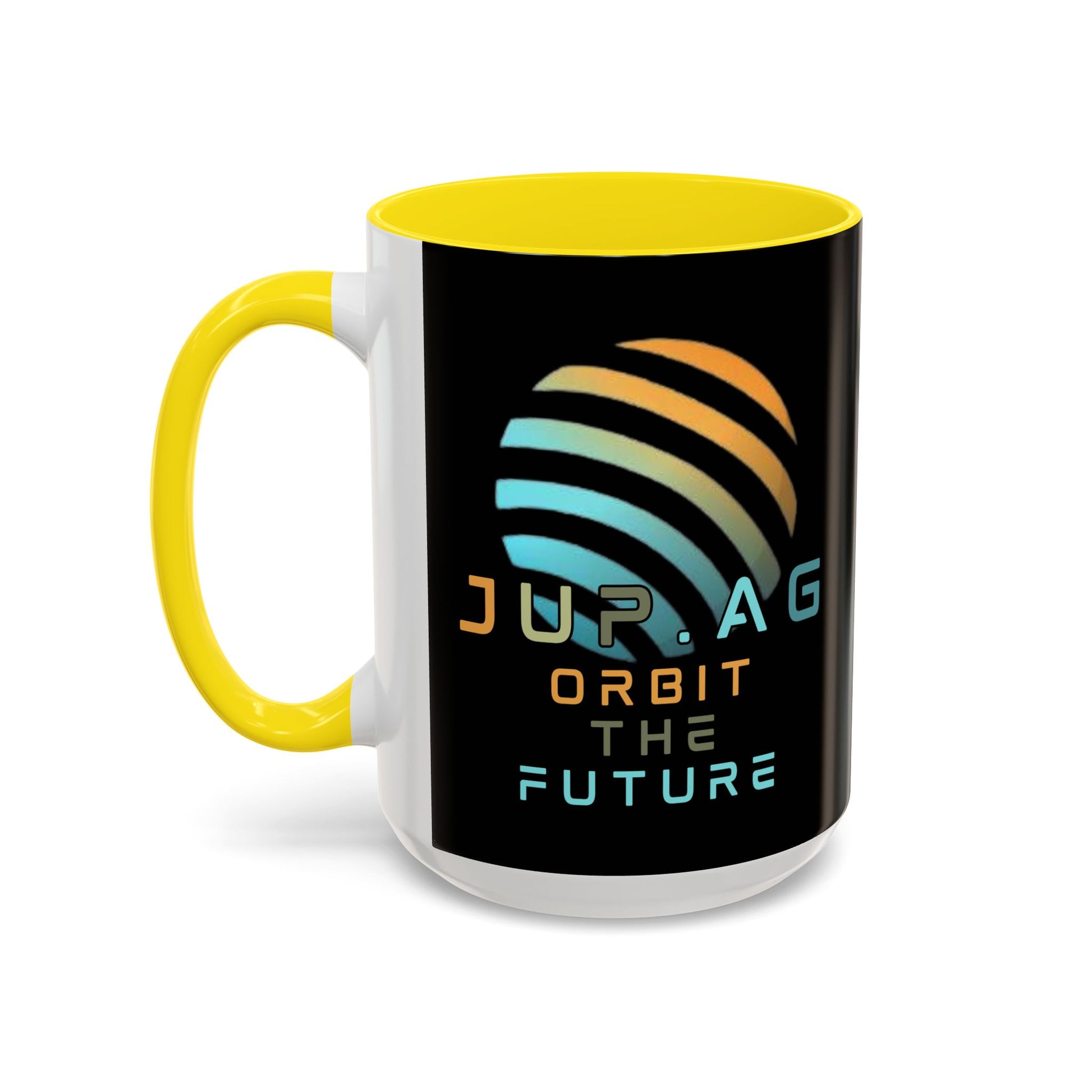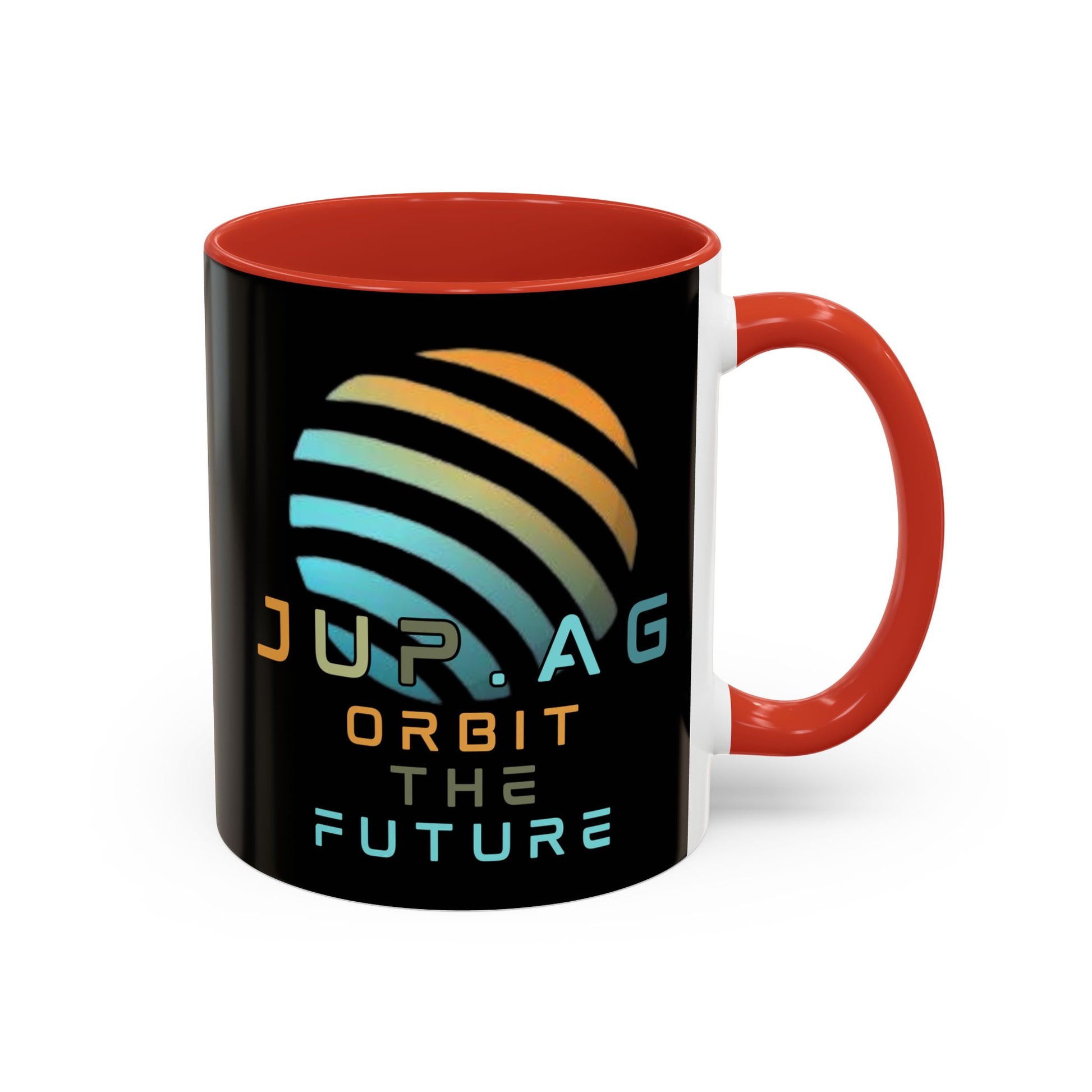 Show your support with the Jupiter (JUP) Orbit the Future Black Accent Mug by cypherpunkgear.com