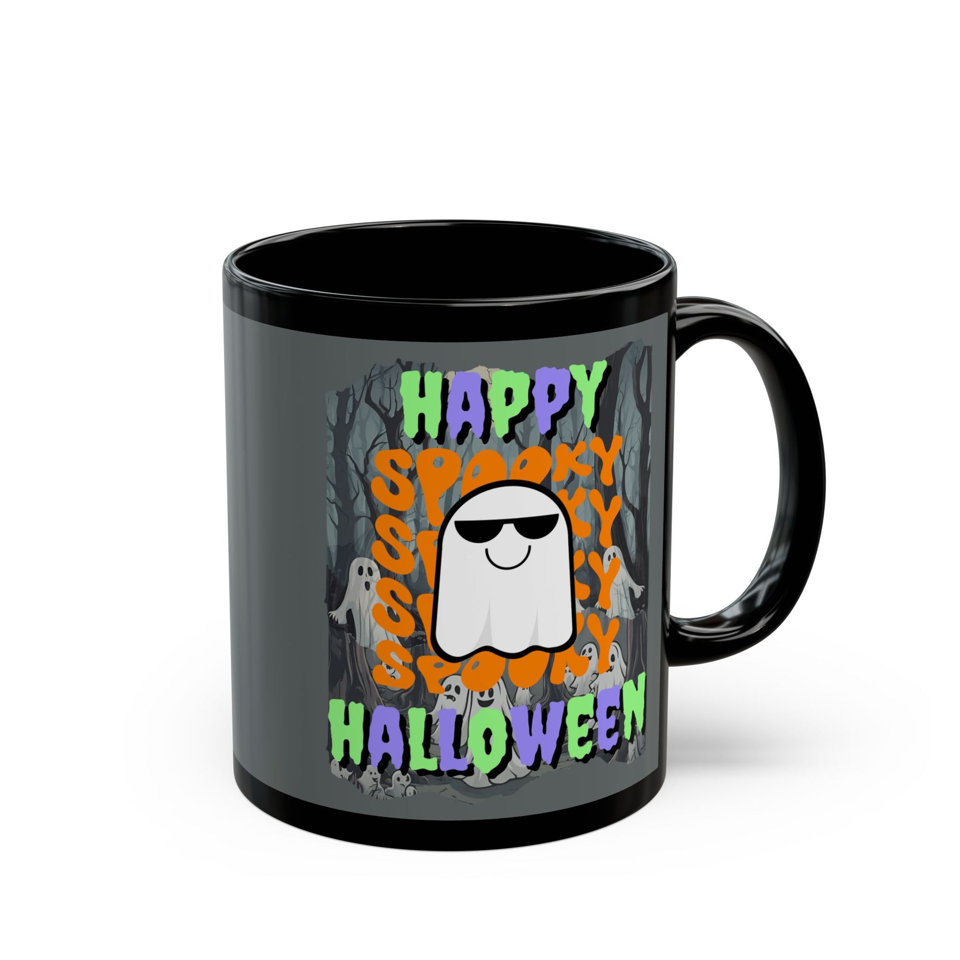 Also available: Spooky Happy Halloween Ghost Green font Grey Mug by CreepyCrafts.boo