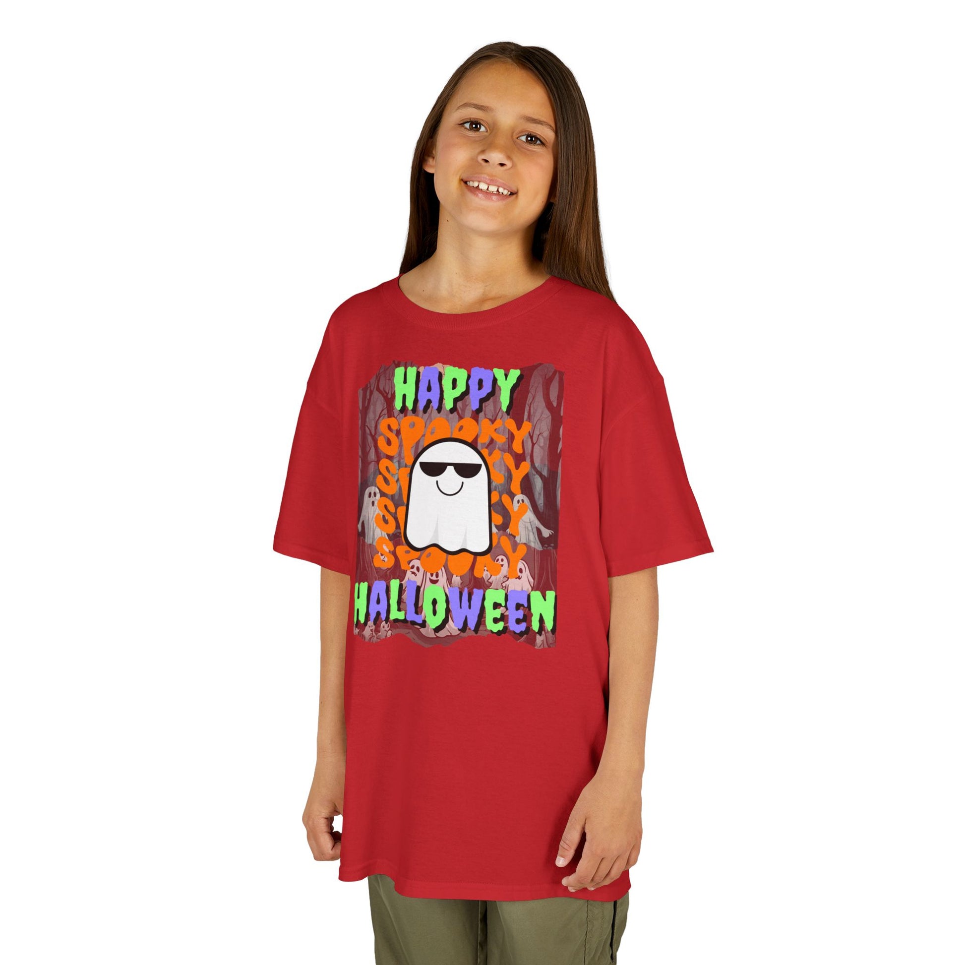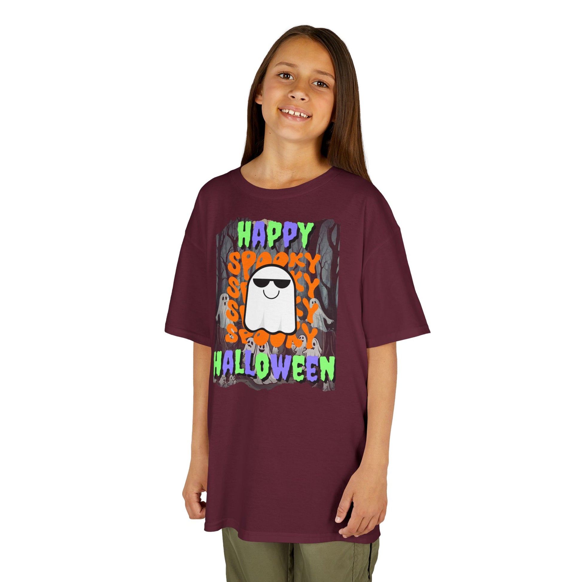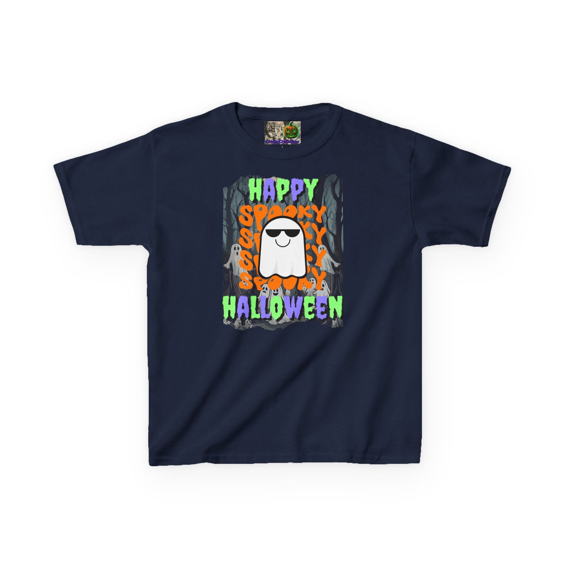 Spooky Happy Halloween Ghost Mixed font Kids Heavy Cotton™ Tee by CreepyCrafts.boo
