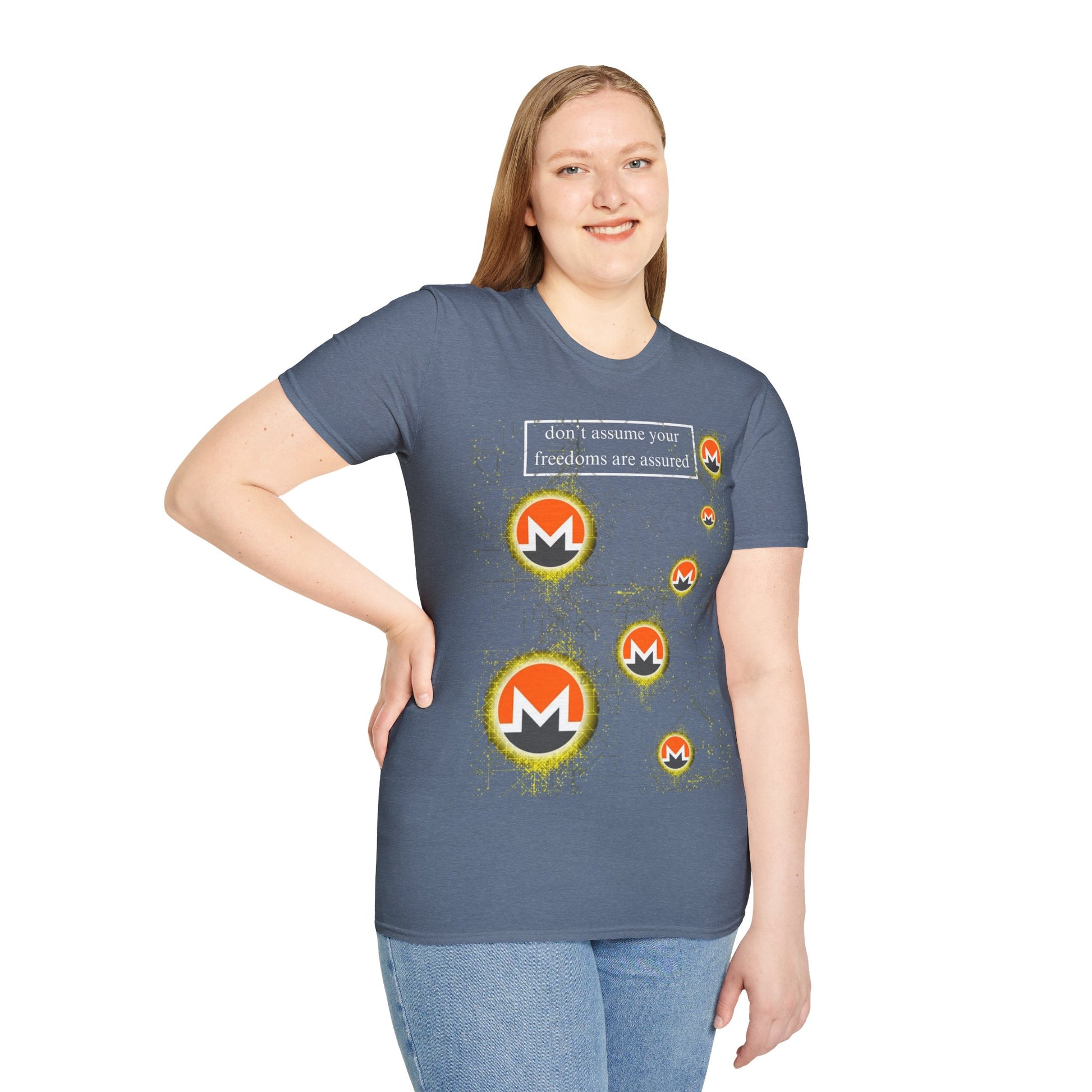 Also available in lighter colors: Monero (XMR) don't assume your freedoms are assured Light colors Unisex T-Shirt by cypherpunkgear.com