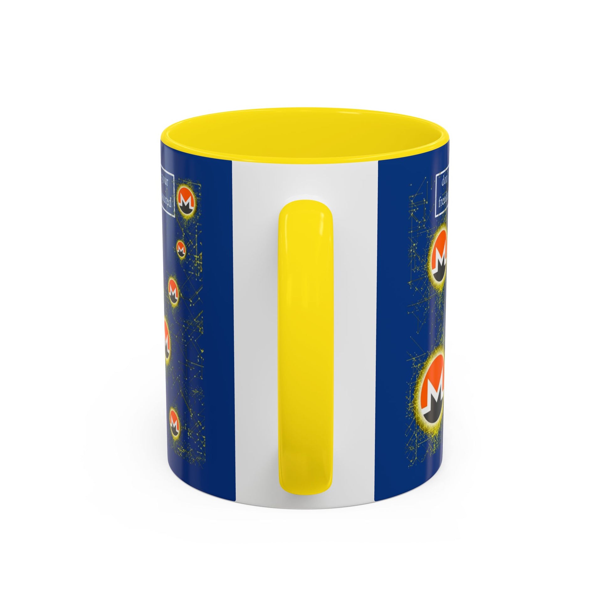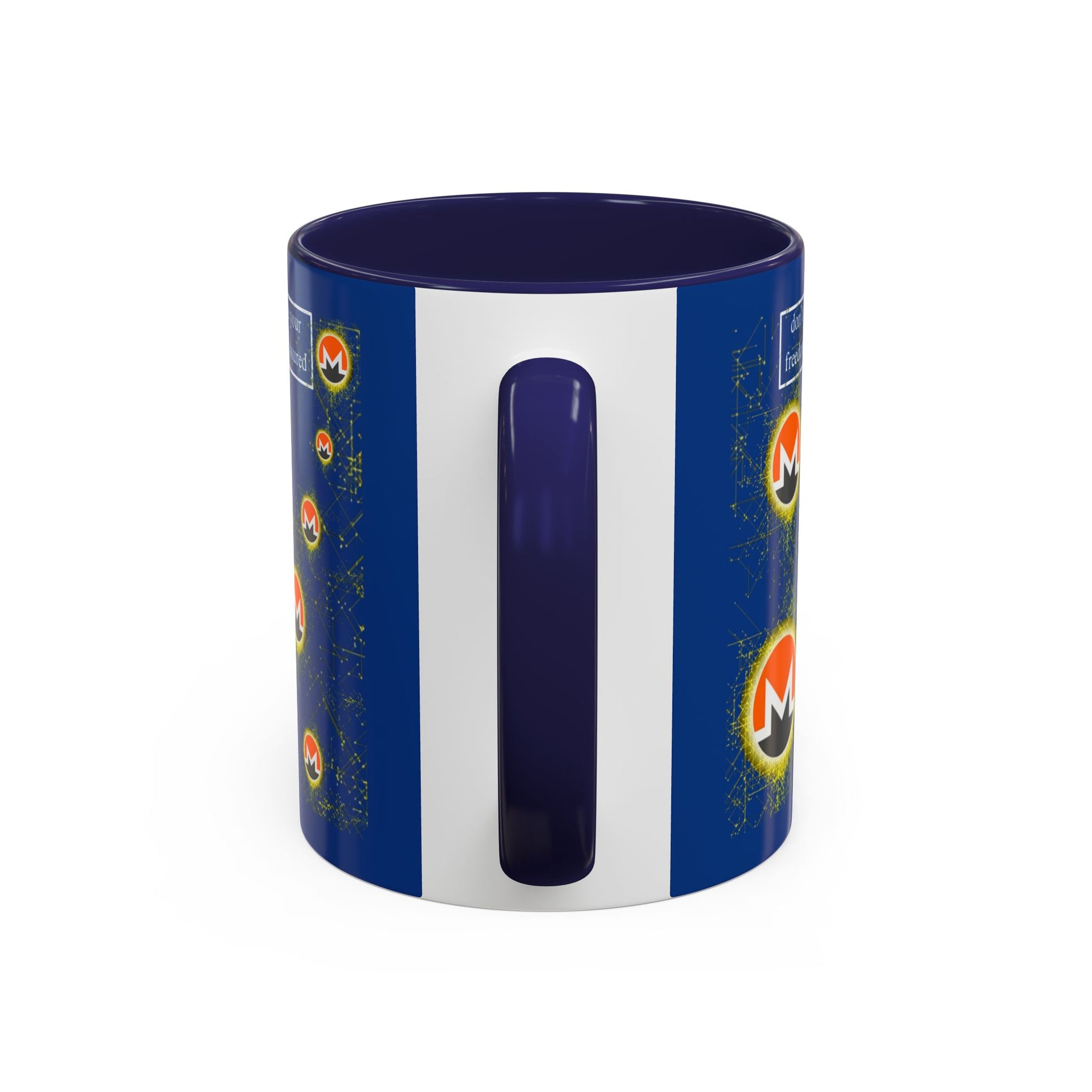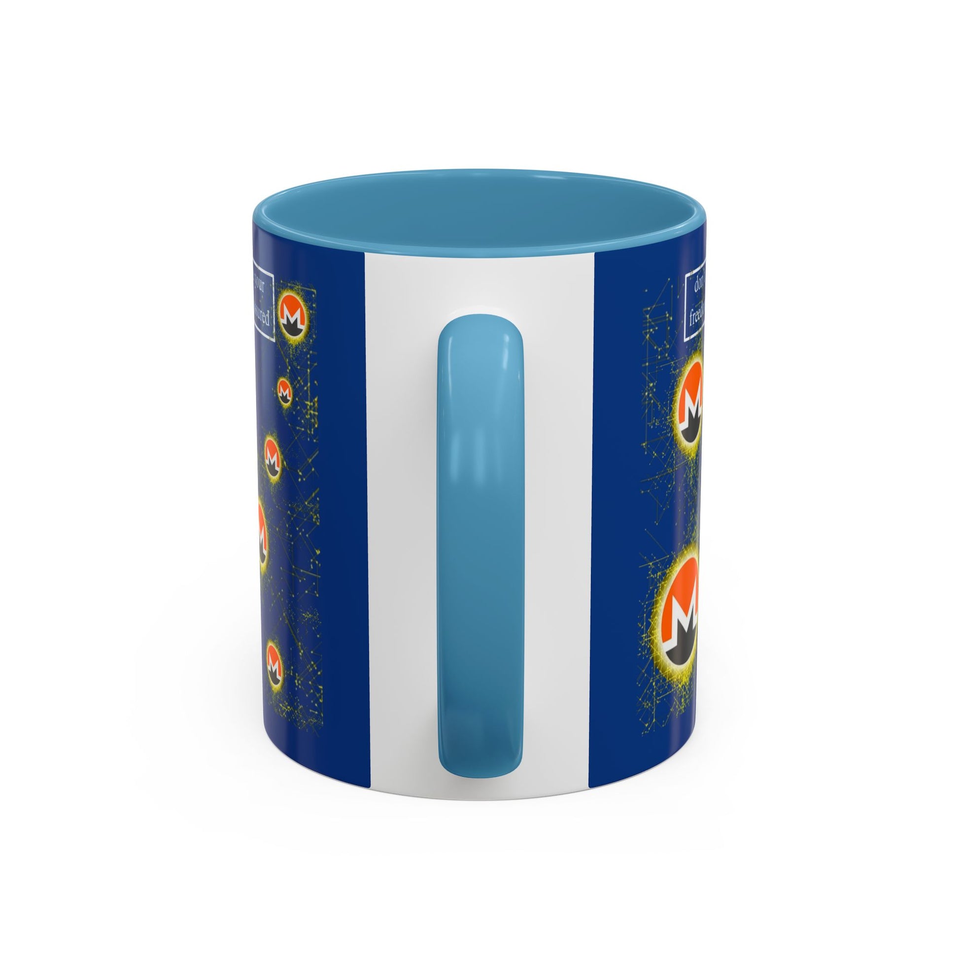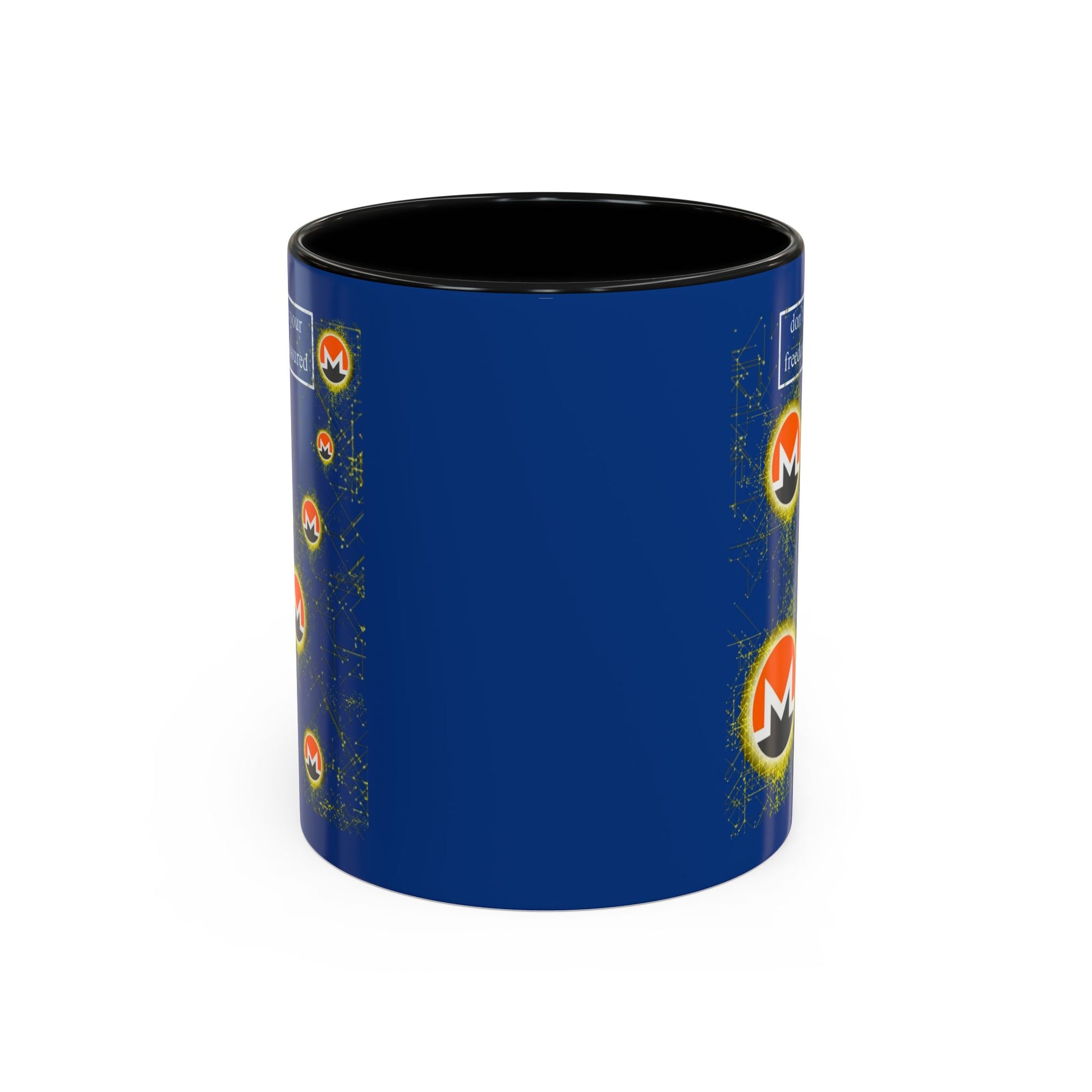 Monero (XMR) don't assume your freedoms are assured Blue Accent Mug by cypherpunkgear.com