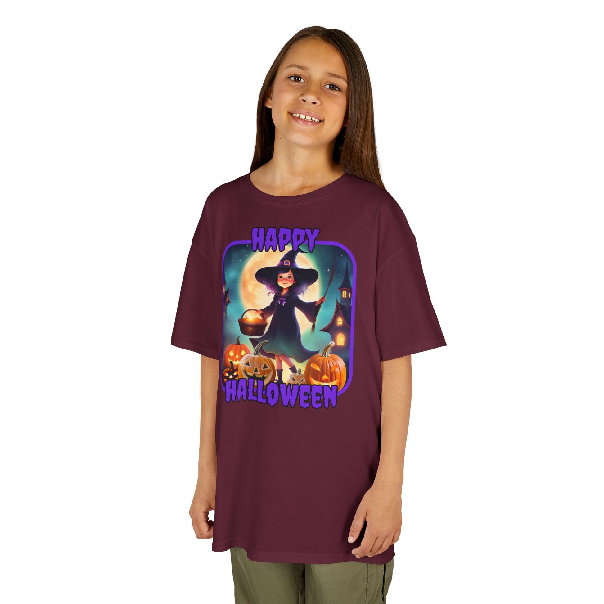 Happy Halloween Little Witch Purple font Kids Heavy Cotton™ Tee by CreepyCrafts.boo