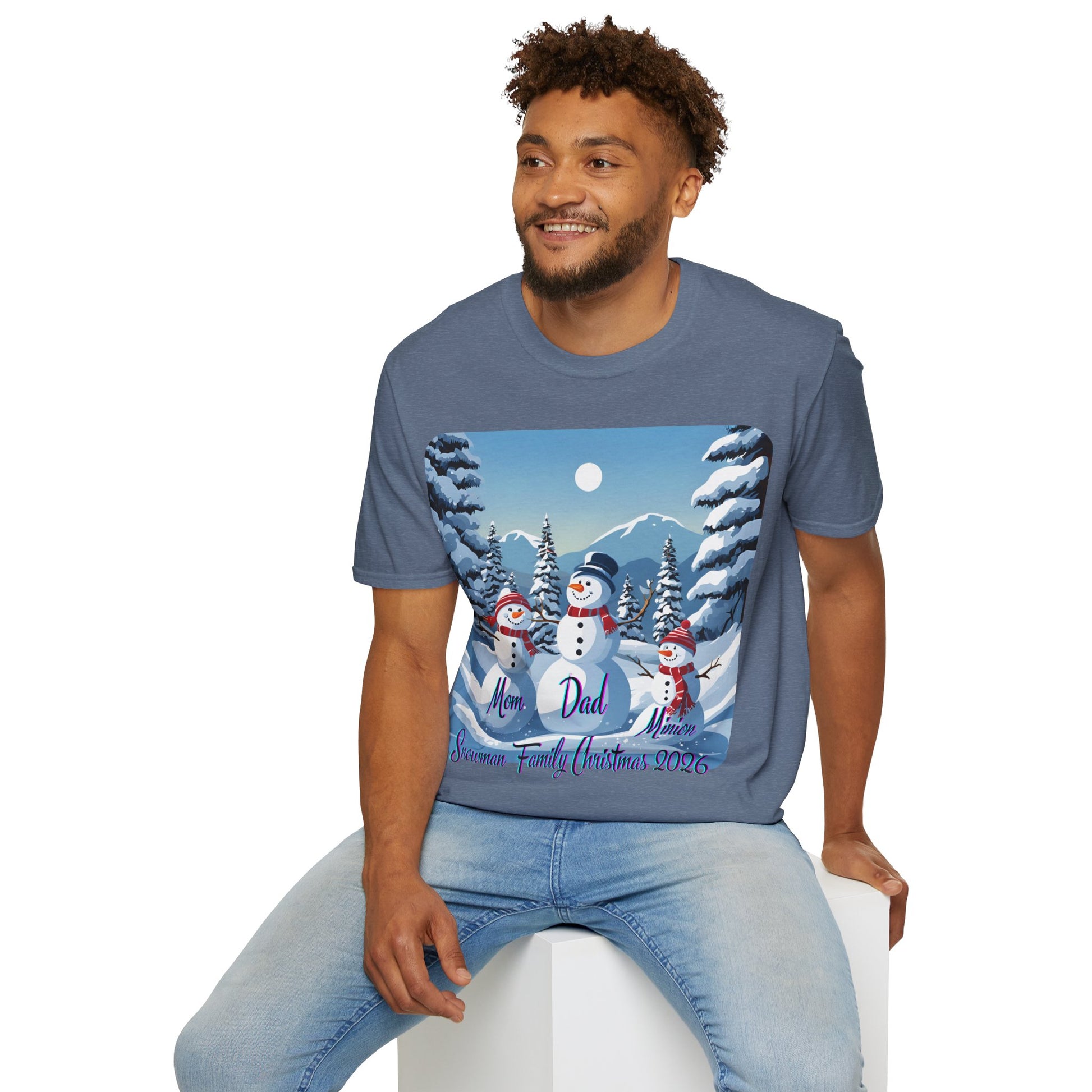 Simply add a detailed message telling us what you'd like written in place for 'Dad', 'Mom', 'Minion', and 'Snowman Family Christmas 2026'