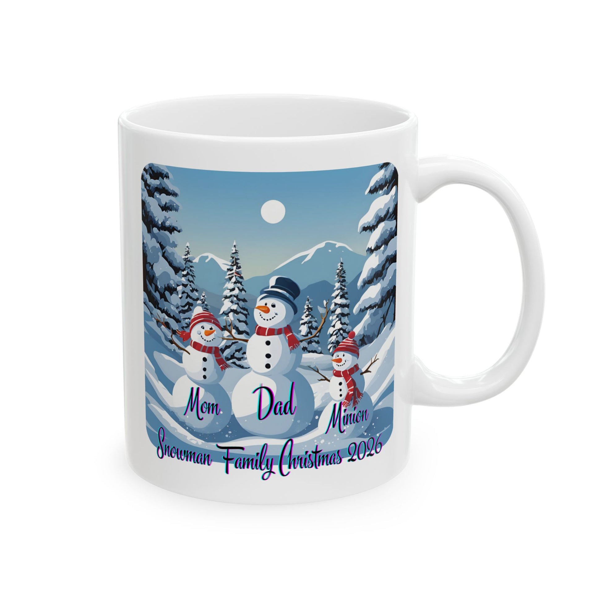 Simply add a detailed message telling us what you'd like written in place for 'Dad', 'Mom', 'Minion', and 'Snowman Family Christmas 2026'