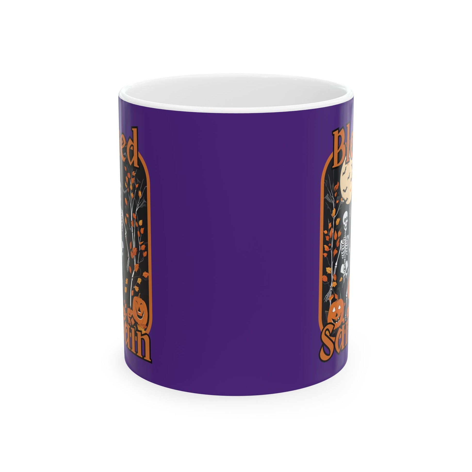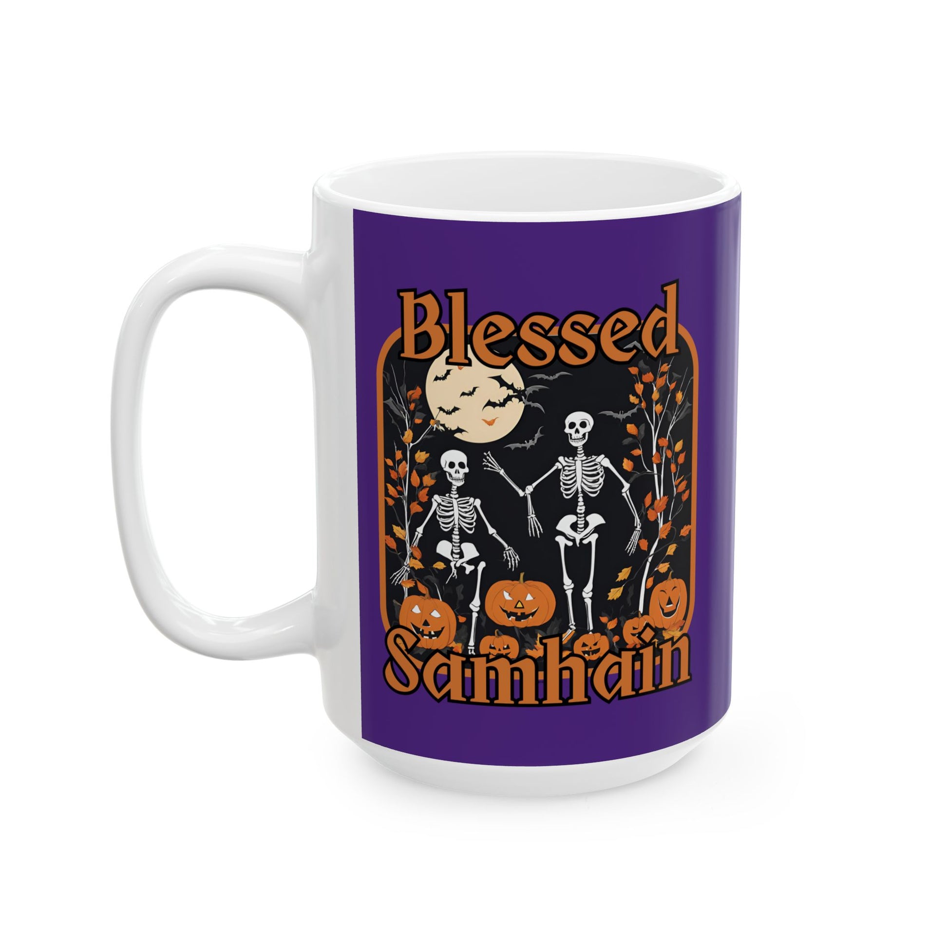 Embrace the Spirit of Samhain with our Spooktacular Skeletons of Samhain Purple Mug by CreepyCrafts.boo