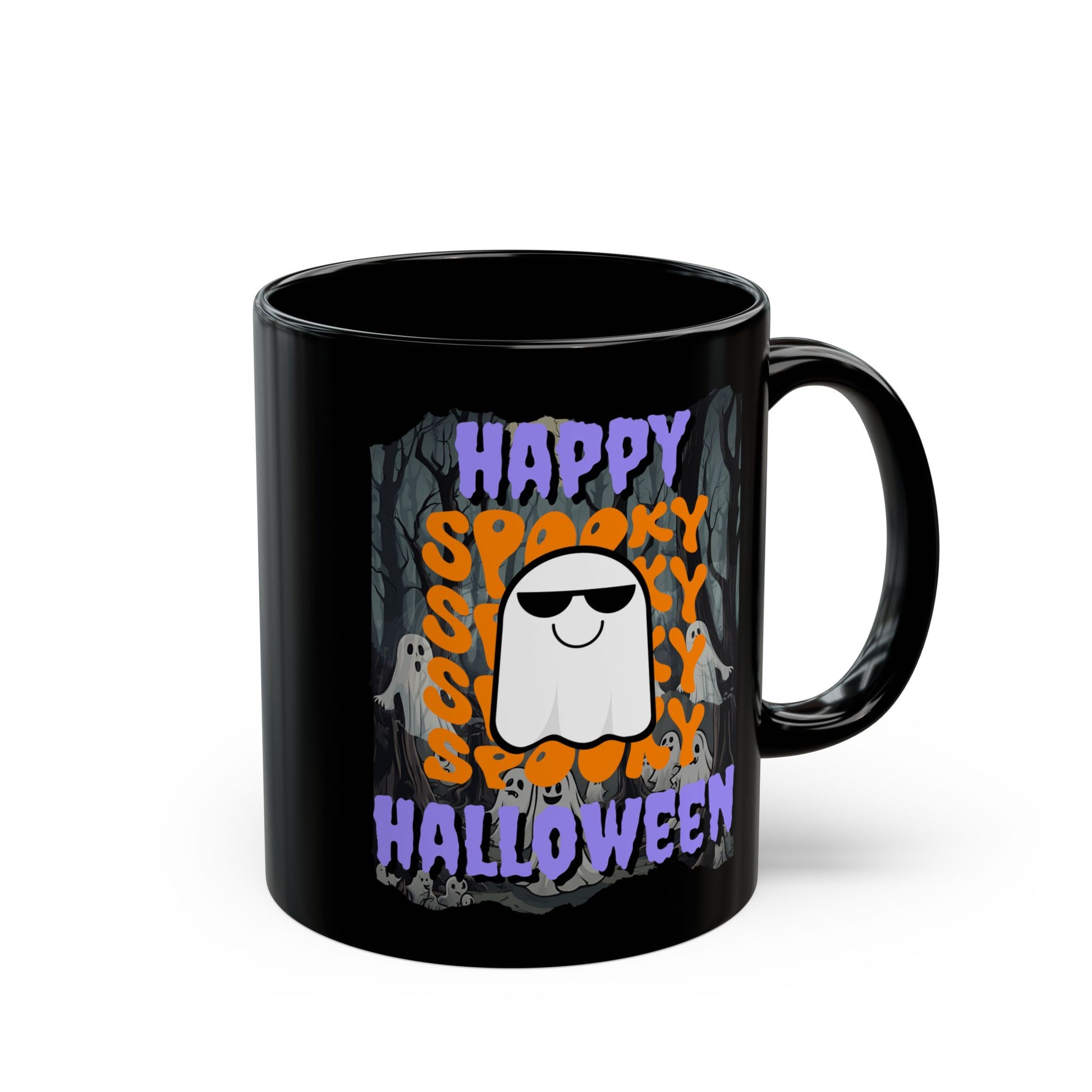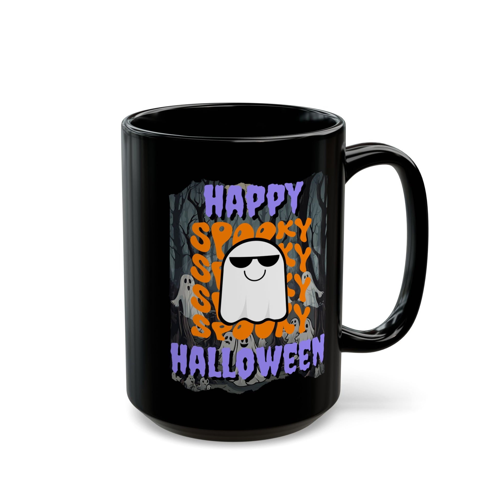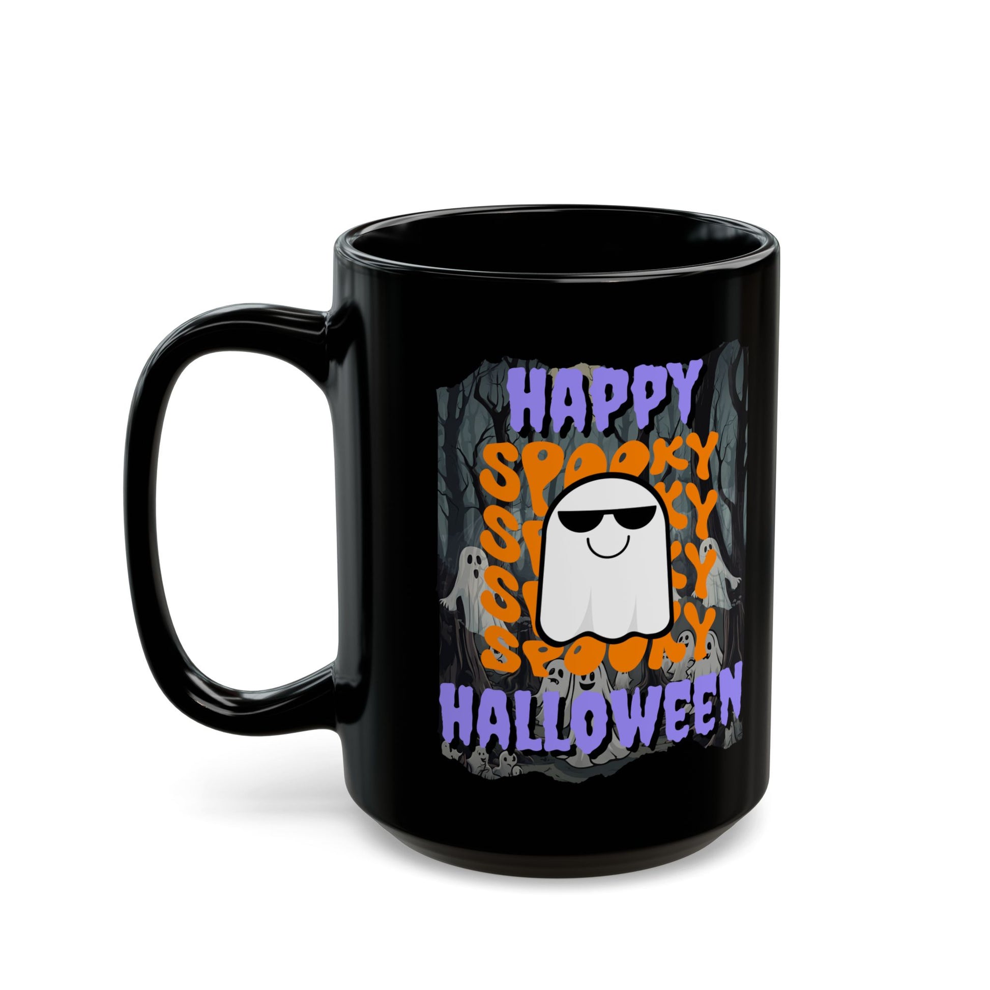 Or, if you prefer: Spooky Happy Halloween Ghost Mixed font Black Mug by CreepyCrafts.boo
