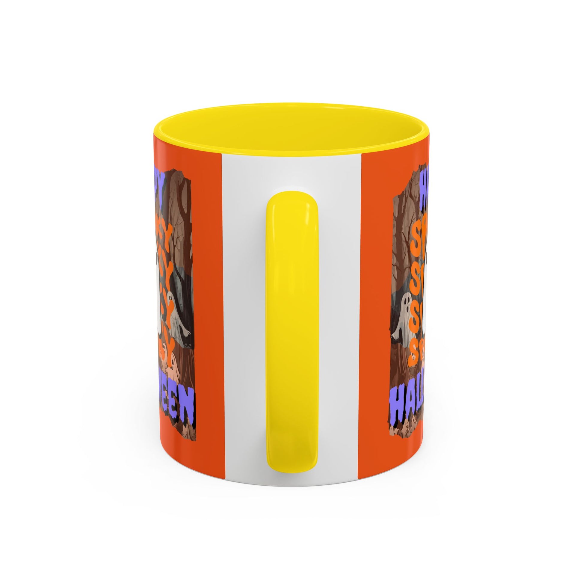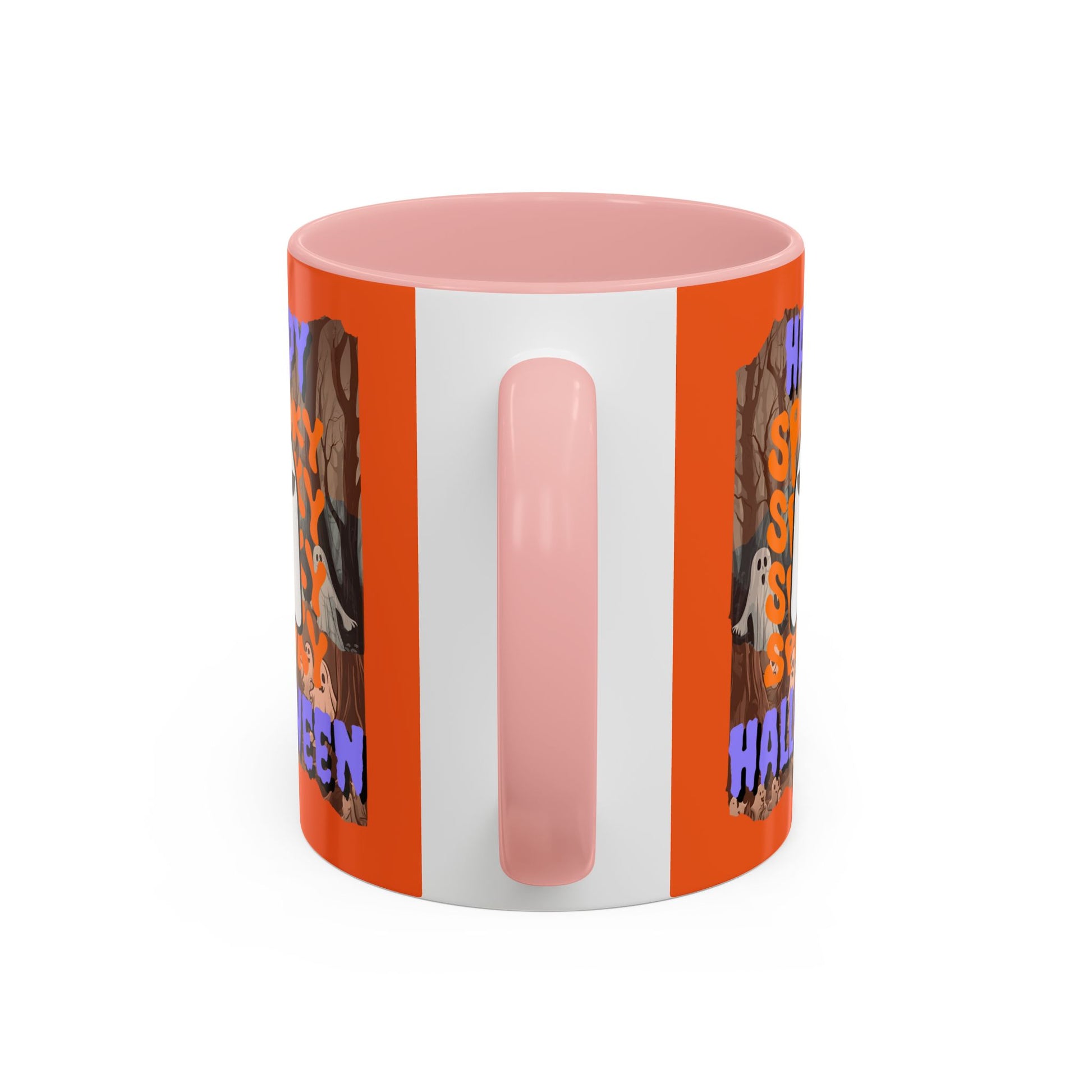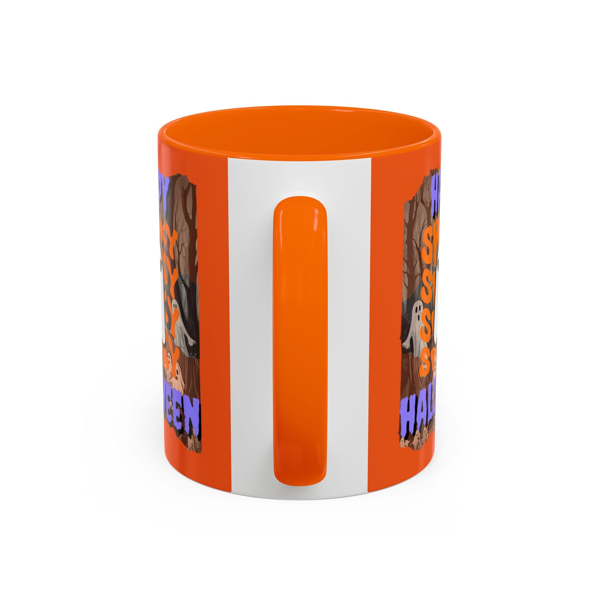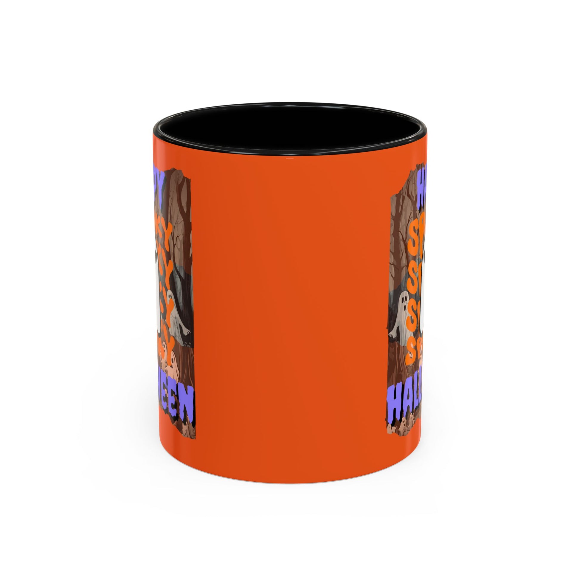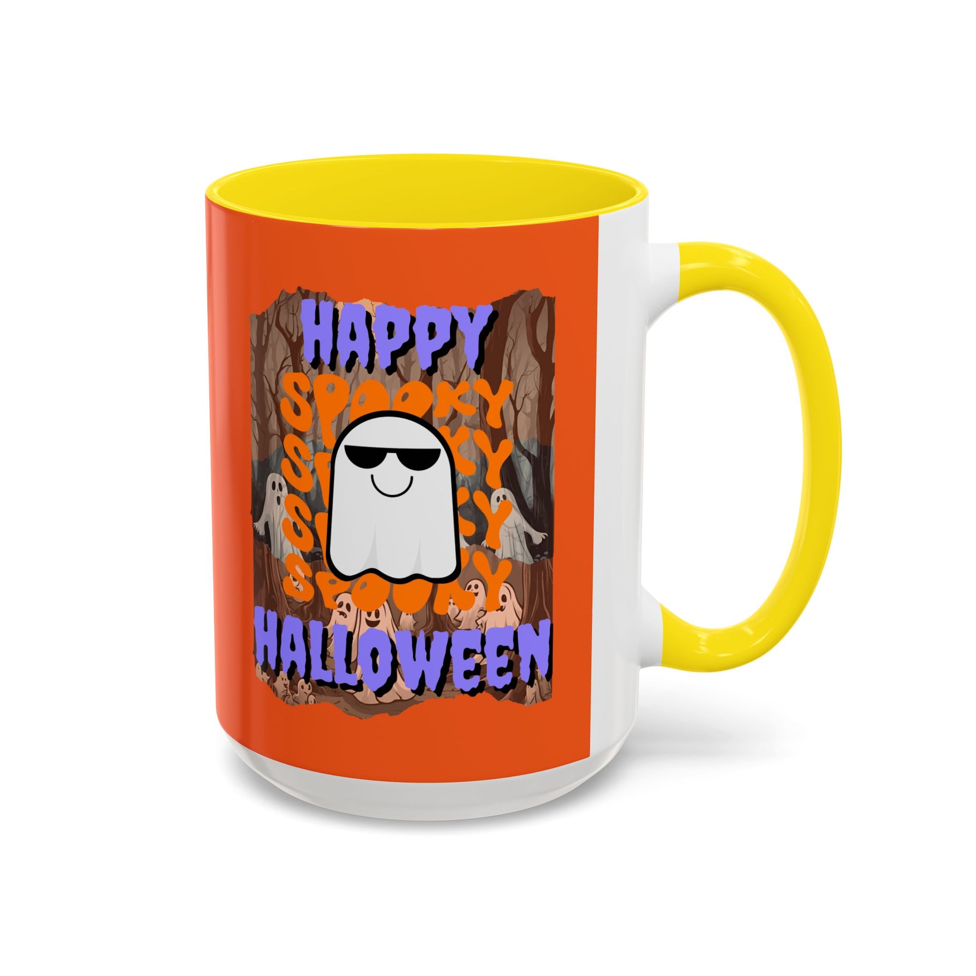 Or, if you prefer: Spooky Happy Halloween Ghost Mixed font Orange Accent Mug by CreepyCrafts.boo