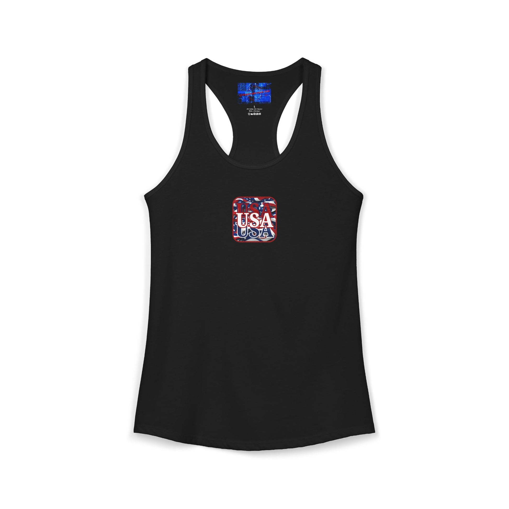 ¡EE.UU! ¡EE.UU! ¡EE.UU! ¡Patriot de 2 caras de cypherpunkgear! Camiseta sin mangas ideal con espalda cruzada para mujer