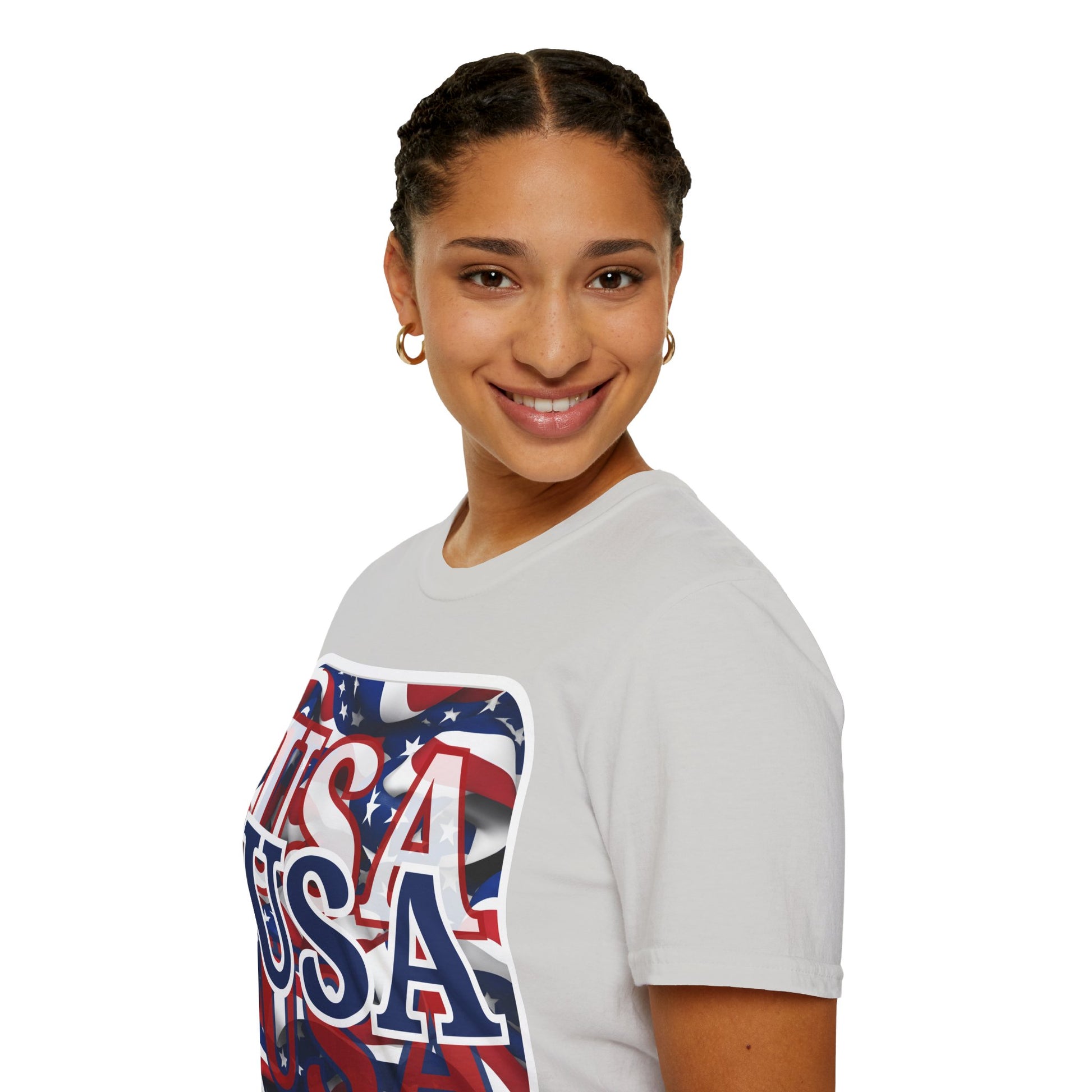 ¡EE.UU! ¡EE.UU! ¡EE.UU! ¡Patriota por cypherpunkgear! Camiseta unisex de estilo suave