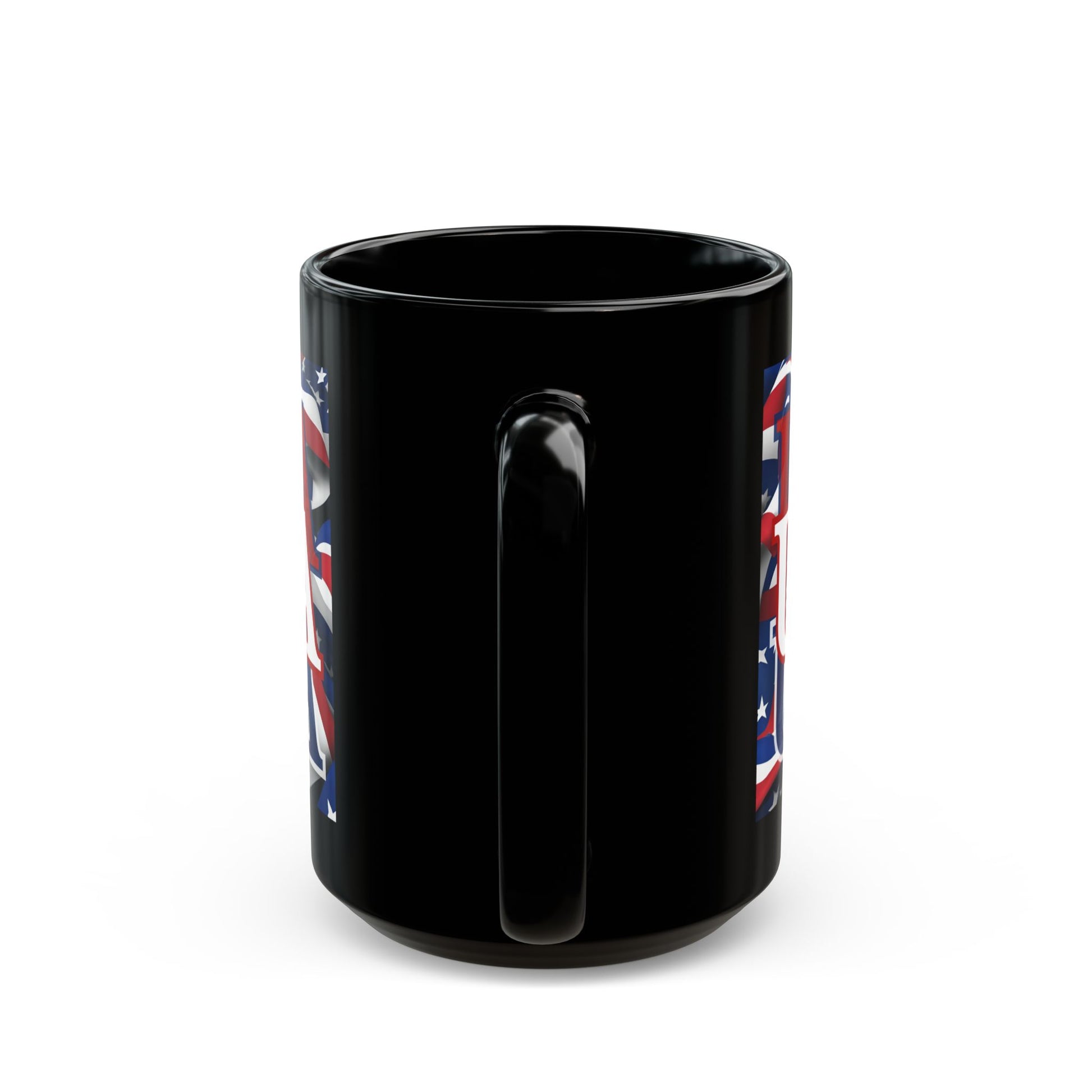 Or, if you'd prefer, in red or blue centered font: USA Red font Center Patriot Black Mug by cypherpunkgear.com