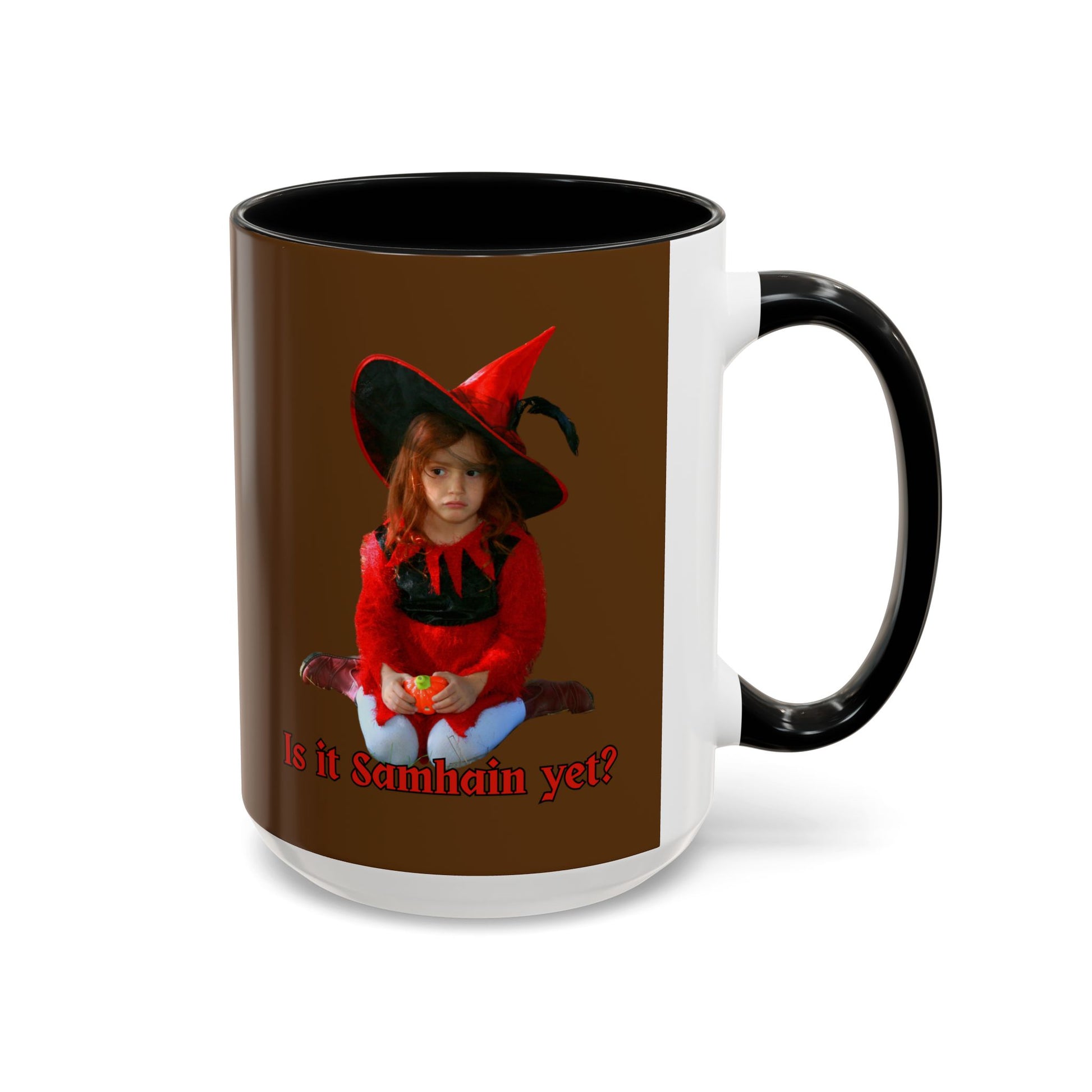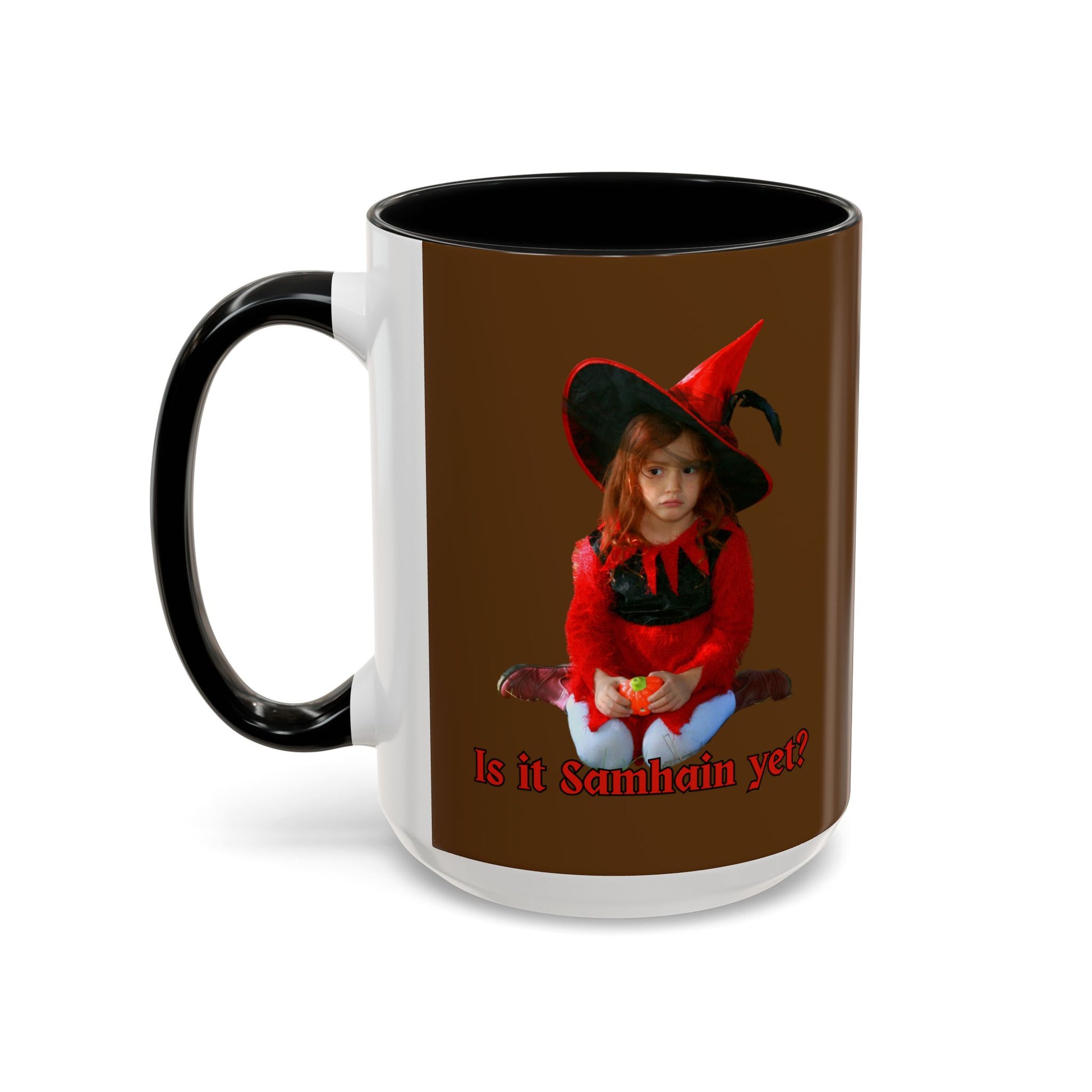 Is it almost Samhain? How about now? Is it Samhain yet? Brown Accent Mug by CreepyCrafts.boo
