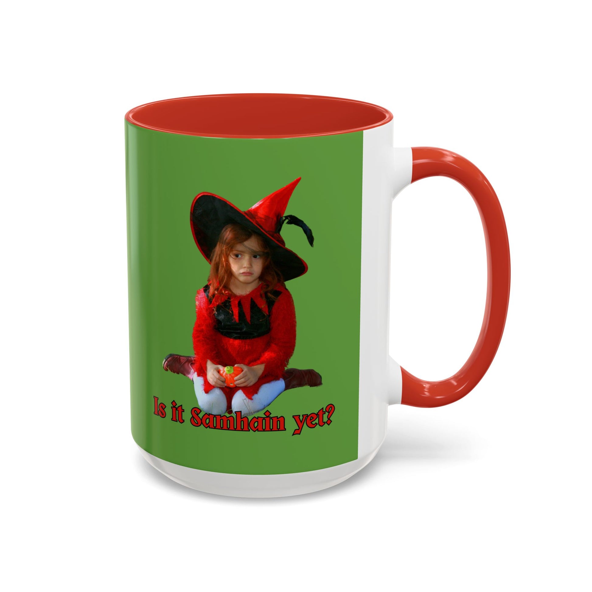 Is it almost Samhain? How about now? Is it Samhain yet? Green Accent Mug by CreepyCrafts.boo
