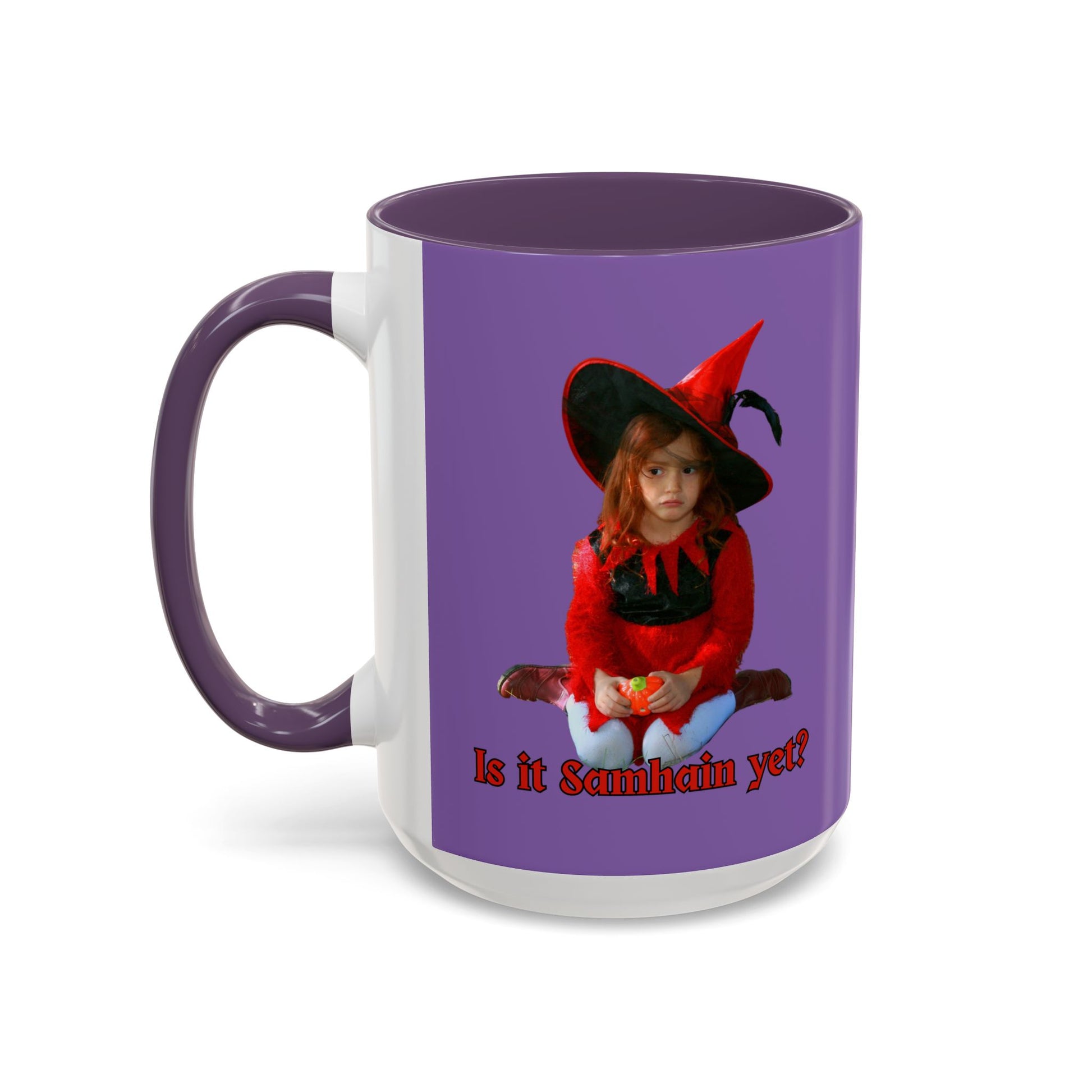 Is it almost Samhain? How about now? Is it Samhain yet? Light Purple Accent Mug by CreepyCrafts.boo