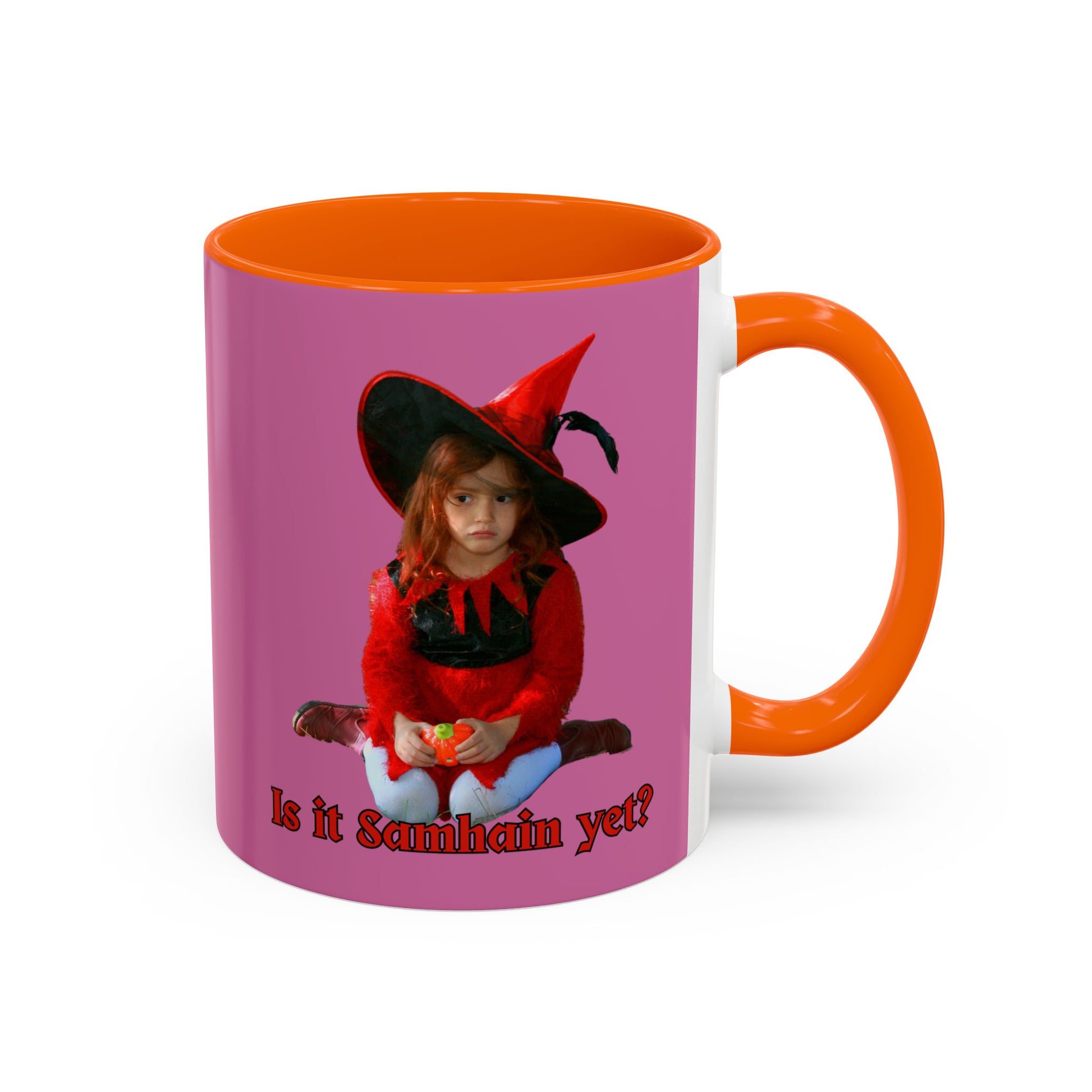 Is it almost Samhain? How about now? Is it Samhain yet? Pink Accent Mug by CreepyCrafts.boo
