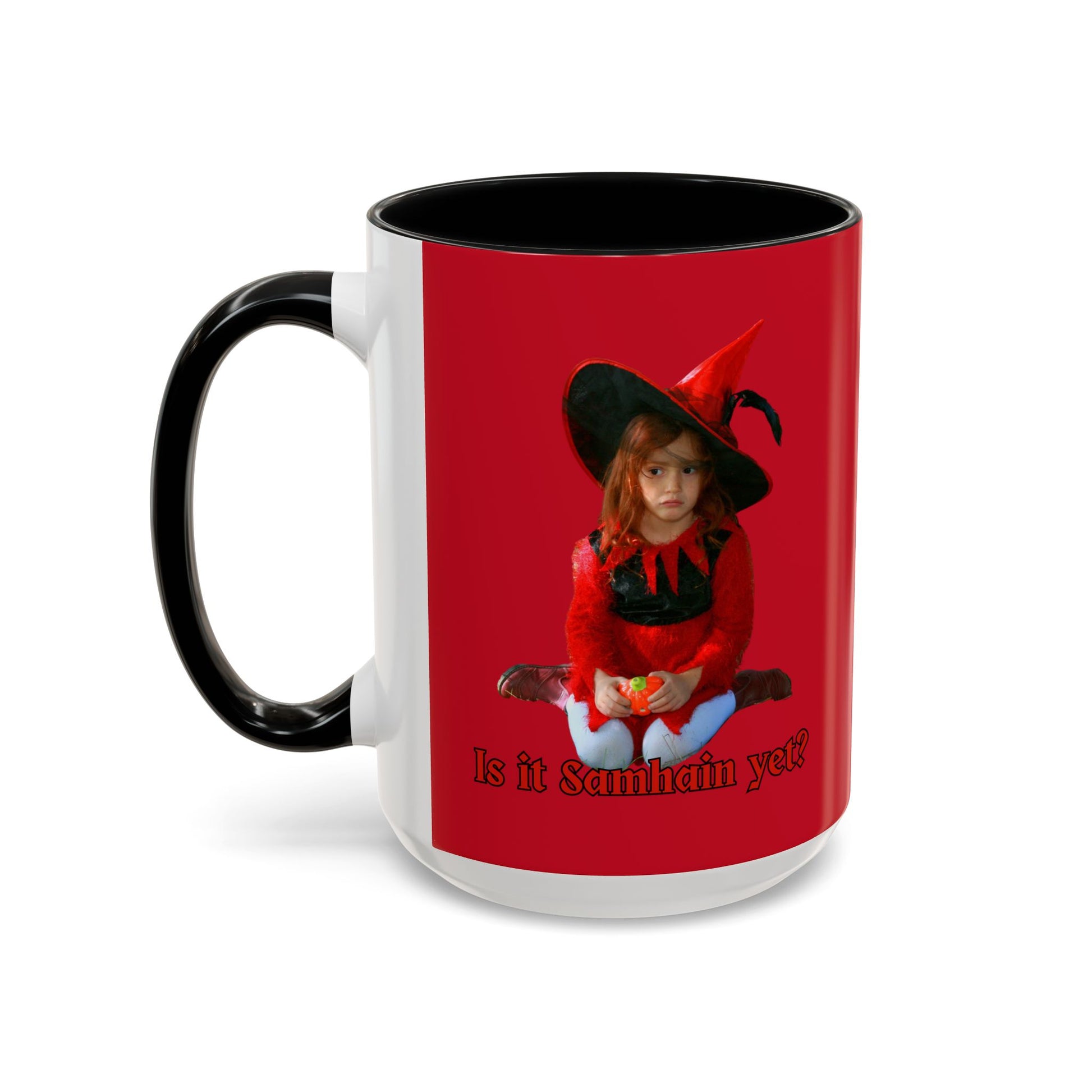 Is it almost Samhain? How about now? Is it Samhain yet? Red Accent Mug by CreepyCrafts.boo