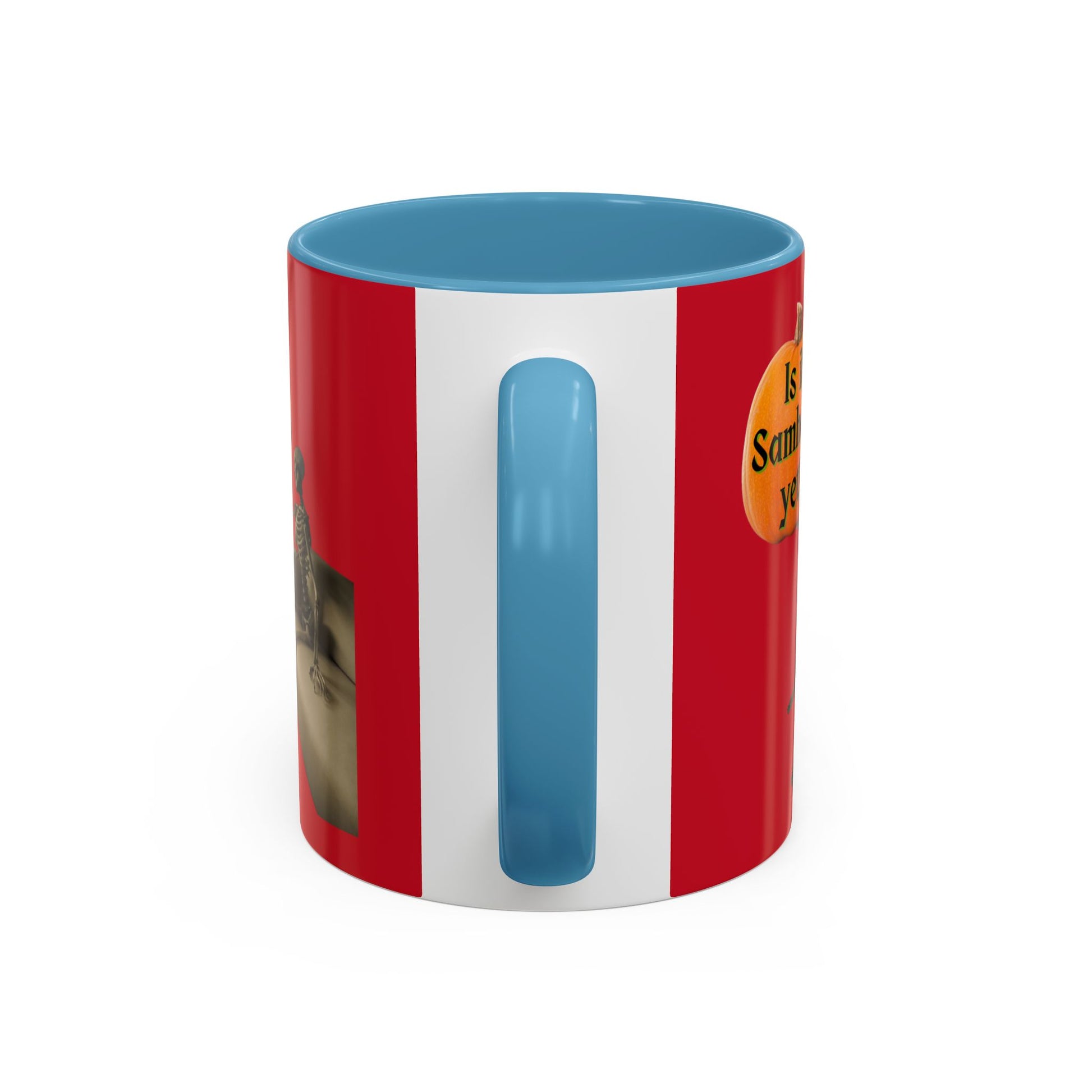 Is it Samhain yet? Skeleton's Pumpkin Red Accent Mug by CreepyCrafts.boo