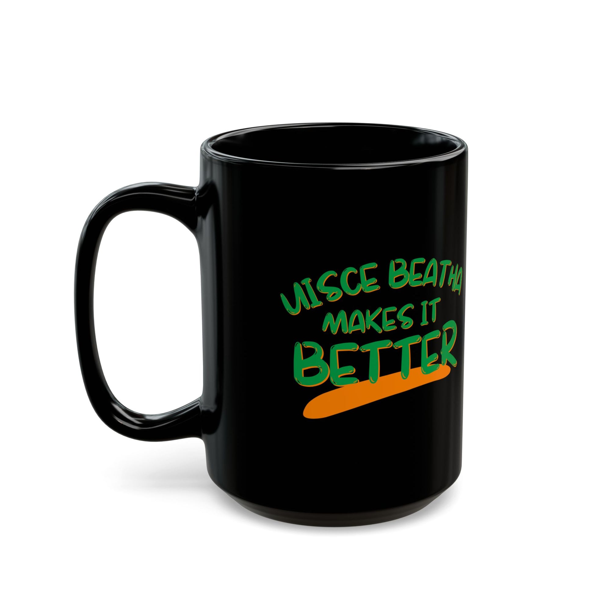 Uisce Beatha makes it better Green font Black Mug by cypherpunkgear.com!